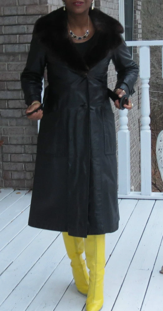 Description: Fabulous Fabulous Genuine Rare color and rare design brown genuine leather trench coat with fabulous full pelt horizontal banded mink fur lining that can be removed and mink fur collar.. the mink liner can be worn as a vest, the mink liner makes this fabulous vintage leather coat very warm. this is a fabulous coat that will generate attention. High impact classy and elegant. jacket so soft and pliable, 3 button closures. This is a Gorgeous fur coat that will look fabulous with jeans and stilettos!!. The fur is very soft and cuddly and moist. the dark brown vintage leather is in excellent preowned condition with non mentionable wear. Coat can be worn with any black belt or with the dark brown belt shown with it and left hanging loose as shown in the pic! it is a A line fitted style, fabulous look, can fit size X small to 4/6.Please check the measurement chart for specific information, but i think this is a size XS-S depending on build because of the loose cut but please check the the approximate measurements below ... Bust: about 35-37 inches Hips: about 43 inches Shoulders: about 16-17 inches tho difficult to measure since this is such a fab coat and it has cap shoulder Overall length: about 44-46 inches Sleeve length from shoulder seam: about 23-24" Please ask any and all questions prior to bidding, item guaranteed to be as described otherwise all items sold as is and are final ! Note: I can't possibly anticipate all the information every bidder might need, so ask and assume nothing that isn't specifically written. Ask all questions all sales are final except for the instances of gross misrepresentation! Terms of Sale Please note in bidding or buying this item you are entering into a binding contract, and you are agreeing to the terms stated here. All sales are final. I aim for 100% customer satisfaction on all my sales. All my items are guaranteed to be as pictured. If the listing description was not accurate, you are welcome to return the item for store credit, shipping charges at your expense. The credit can be used to buy anything in my store within 6 months of issuance. Before you return any item you must notify me and get an acceptance that I will receive it. The item being returned must show a postmark that is within 48 hours of you receiving the item; otherwise all sales are final. No returns or merchandise credit are allowed after 72 hours of delivery confirmation of receipt of the item. I have this policy to cut down on bidders that buy my items, wear it and then decide to have an excuse to return it. I hope you understand. Your purchase of this item assures that you have read the terms of this policy and are agreeing to the terms. Thanks Chistick's Couture and Collections