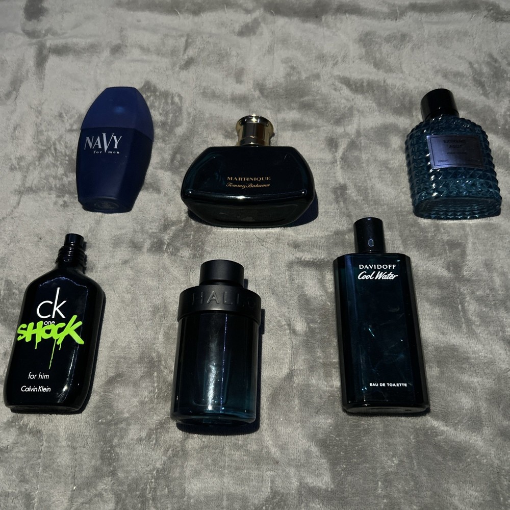 New cologne lot 98-100% FULL Calvin Klein- the one shock for him 98% FULL TOMMY BAHAMA- Martinique 99% FULL HALLOWEEN- MAN X EDT BRAND NEW DAVIDOFF- Cool water EDT 98% FULL EXTREME AQUA- pour homme BRAND NEW FREE GIFT-Navy for men 60% Full For those who want some blind buys for a crazy discount, majority are brand new and smell very pleasant.
