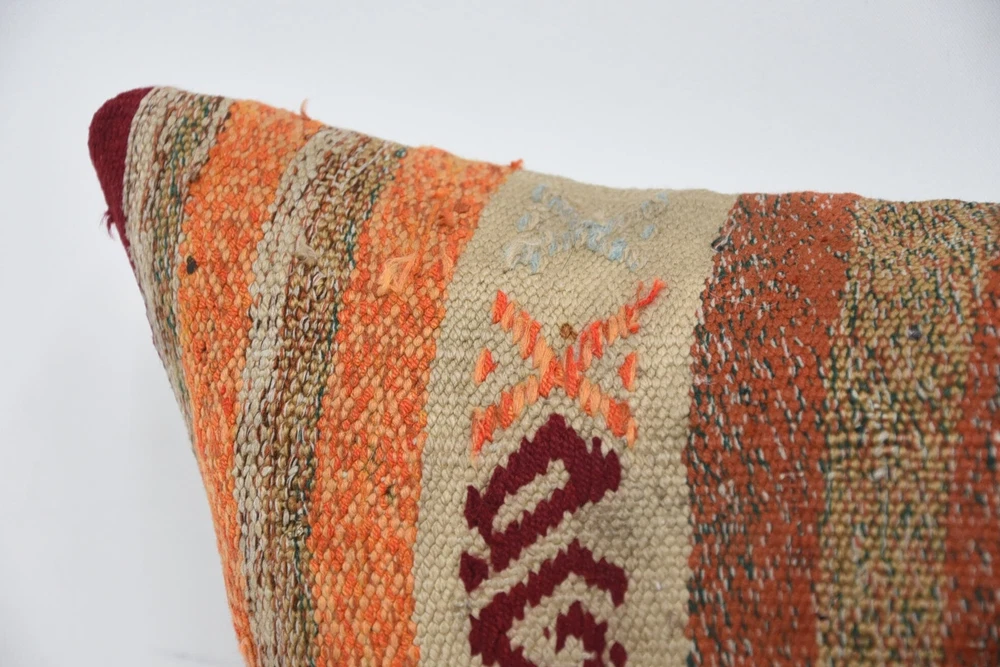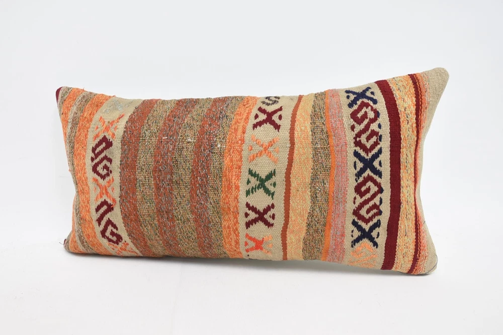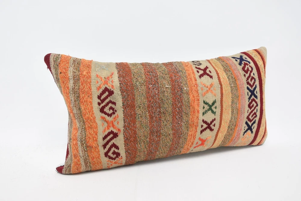 Introducing my Home Decor Kilim Pillow Cover, a stunning piece of farmhouse decor handcrafted from a vintage kilim rug. This unique cushion cover is a perfect addition to my home, providing a touch of warmth and elegance to any space. These decorative pillow cases are a simple yet effective way to transform my house with small, meaningful touches. Add a personalized touch to my living space with my customizable pillow covers, making them ideal for various occasions such as Bridesmaid Gifts, Wedding Gifts, Best Friend Gifts, Custom Gifts, Birthday Gifts For Him or Her, and even as a thoughtful Gift For Mom. Whether you're looking for a Personalized Pillow, Custom Body Pillow, Crochet Pattern Pillow, Pet Pillow, Bolster Pillow, or Gift For Home Pillow, we have you covered. Detailed Information About This Kilim Pillow Cover, Cushion Cover Crafted from a vintage Turkish rug. This Kilim Pillow Cover measures 12 x 24 inches (30 x 60 centimeters) , Making it a versatile piece for my couch or sofa. Should you require a pillow insert, it can be conveniently ordered separately in this listing variation. Rest assured, my kilim pillow covers are clean and ready for immediate use. Prior to designing them, all vintage rugs undergo professional washing to ensure their cleanliness and quality. The front side of the pillow cover features a vintage wool rug, while the backside is made of soft cotton fabric. For my convenience, we've incorporated a zipper on the backside, allowing you to easily remove and wash the pillow covers whenever needed. In this listing, you'll find a variety of lumbar pillow covers that are equally suitable for use as bedding pillows or outdoor accents. Experience the versatility and charm of my kilim pillow covers firsthand. We strive for customer satisfaction, and my decorative kilim pillow covers are backed by my guarantee. If, for any reason, you're not completely satisfied, we accept returns and offer refunds. Please note that shipping charges from Turkey will be deducted from my refund. If you have any questions about my kilim pillow covers, please don't hesitate to reach out. We're dedicated to providing prompt responses and are always here to assist you.