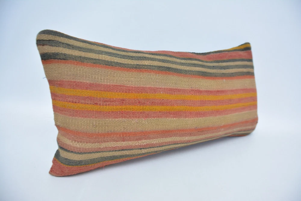 Designer Pillows, Body Pillow, Antique Pillows, 12"x24" Orange Kilim Pillow