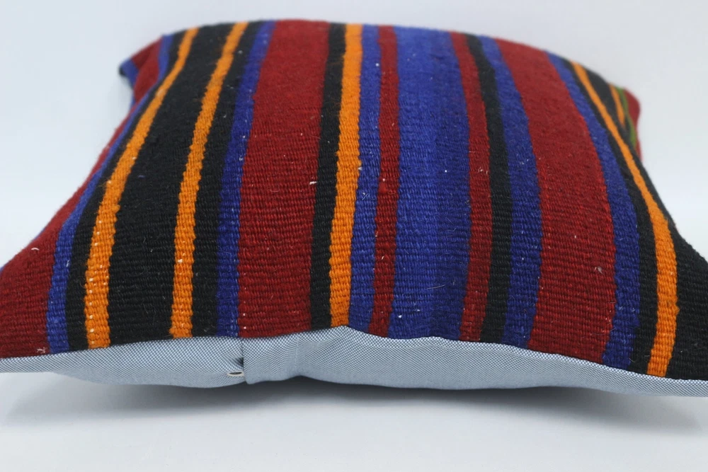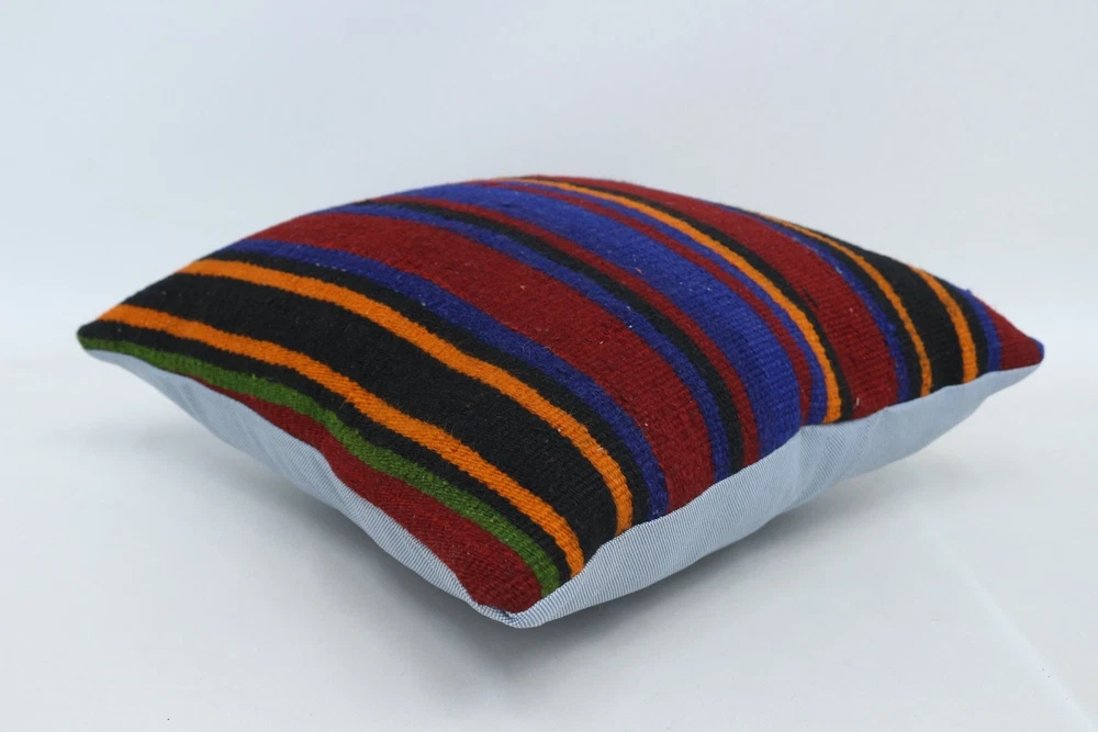 Kilim Pillow Details: All of my beautiful pillow covers or cushion cases are designed and made by me. I am making my throw pillow covers from handmade vintage rugs, Turkish rugs. Therefore, each of my vintage kilim pillowcase is one of kind. These cushions covers are piece of an art. The size of this pillow is 16 x 16 inches or 40 x 40 cm. The front side of this decorative pillow cover, cushion cover is wool on wool vintage kilim rug. The backside of this throw is high quality cotton fabric with a high quality zipper. This listing has 2 option for this handmade pillow. You can choose with insert or without insert. The listing photos is with insert in the pillowcase which is just for demonstration purpose. All of my vintage Turkish rugs have been professionally washed before I cut them as pillow case or cushion case so these kilim covers are 100 posent clean and ready to use. Due to the age and handmade nature of these vintage rugs, there might be imperfections and flaws that are not considered defects. This is a piece of a handmade vintage rug with minor signs of wear consistent with age and use that give it an antique look. You can see the condition of the rug pillow clearly in the detailed photos. I am going to ship your order of decorative pillow as soon as possible. I usually ship in the next day with DHL Express or FedEx which will deliver the kilim pillow, cushion cover just in 3-5 business days. It is my responsible until you receive pillow cover or pillow cover with insert at your door. If the pillow cover or insert get lost or damage during the shipping, I will ship the new kilim pillow cover or pillow insert for free as soon as possible. I take photos of my throw pillows indoor with professional camera which shows the real colors. The photos of these Turkish pillow covers are not altered. Keep in mind the colors of the rug vary slightly in different lights. Please contact to me for additional photos. I take the photos of my vintage rugs outside with daylight to show you the real and natural colors. My photos are not altered. Keep in mind the colors of the rug vary slightly in different lights. Please contact to me for additional photos. SATISFACTION GUARANTEED for your order in my shop. Your SATISFACTION is the most important to me. Please write me if you have any question or if you don't like anything from my pillow covers, cushion covers. If any reason, you are not happy from your Turkish pillow cover, I accept return without any hassle. Please read my shop policies for details. This cushion case or pillow cover can be used as decorative throw pillow, gift pillow, Christmas pillow case, bedding pillow, lumbar pillow, sofa pillow, bohemian pillow, boho pillow. You can find in any kind of Turkish kilim pillow cover in different design such as striped pillow, embroidered pillow, and geometric pillow.
