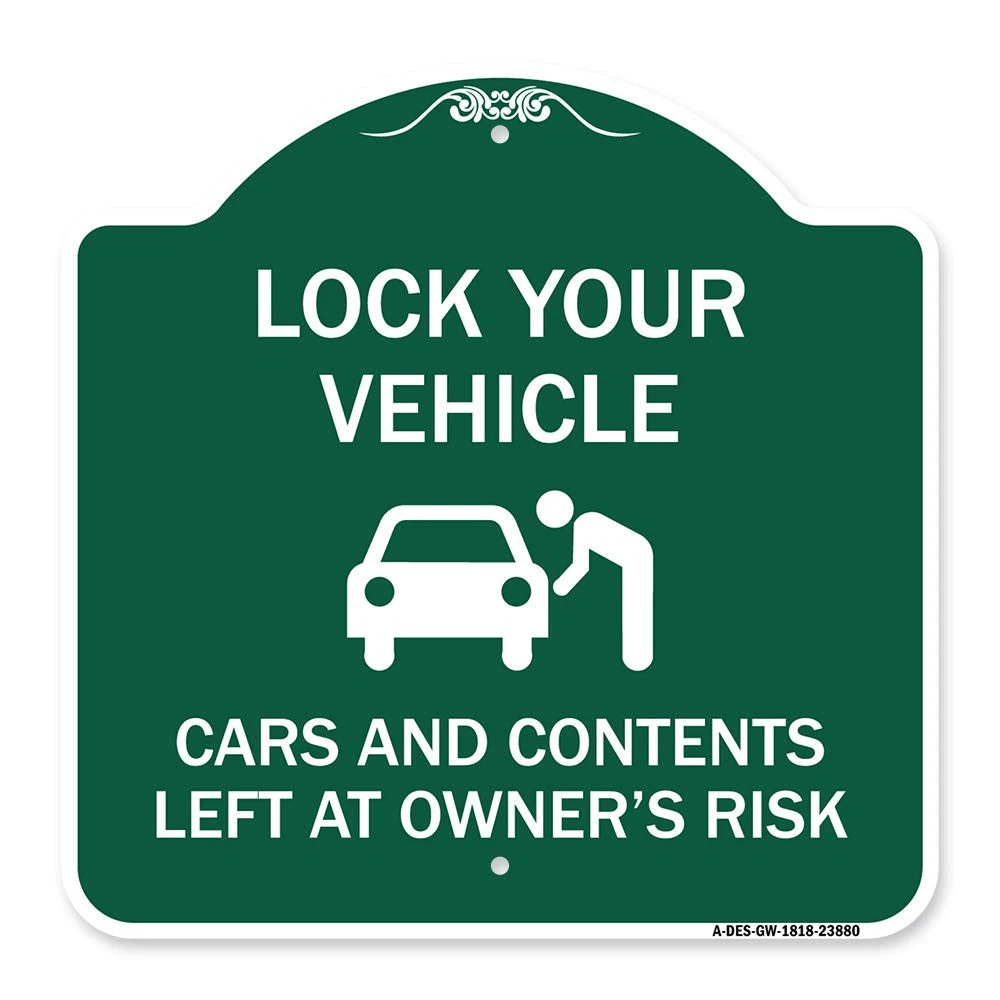 Designer Series Sign - Lock Your Vehicle - Cars and Contents Left at Owner's ...