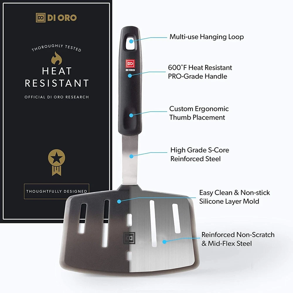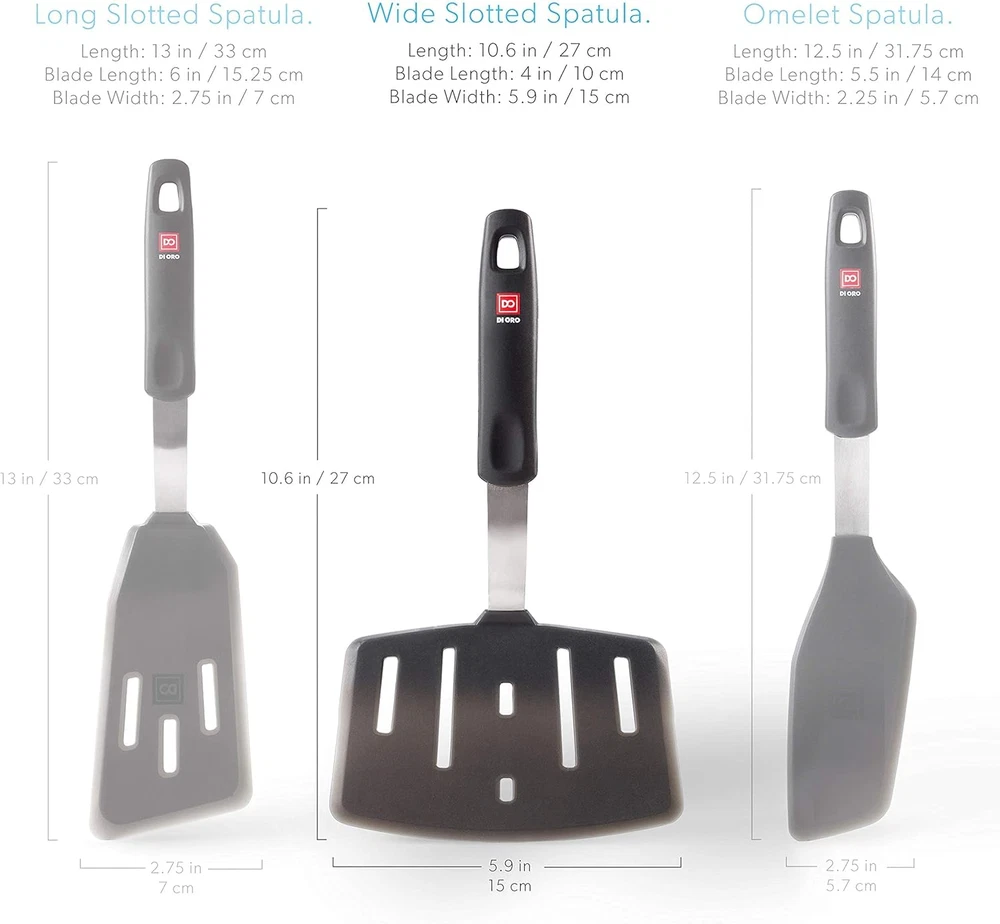 Store New Arrivals Add to Favorite View Feedback Contact Designer Series Wide Slotted Turner Spatula - Features 600F Heat-Resistant No-Melt Rubber Spatula Handle and Blade - Silicone Kitchen Spatula for Cooking or Baking - Dishwasher Safe Description Color Silver, Black Material Stainless Steel, Silicone Material Type Stainless Steel, Silicone Handle Material Plastic,Rubber,Silicone Item Weight 167 Grams Shape Rectangular Recommended Uses For Product Flipping, Sautéing, Serving Material Type Free BPA Free Is the item dishwasher safe? Yes Product Dimensions 11"L x 6"W Item Dimensions L x W 11"L x 6"W Size Wide Slotted Spatula THE ULTIMATE "NO MELT" HEAT-RESISTANT SPATULA HANDLE – Tired of having to throw out cheap spatulas with burnt or melted handles? All of our Designer Series Spatulas feature handles and blades made of 100% silicone that are heat-resistant up to 600°F. That means no more handles melting on the edge of your pans or worrying about little pieces of plastic invading your food. The original and innovative silicone handle feature makes the Designer Series Wide Slotted Spatula one of a kind. WHERE INNOVATION MEETS FLAWLESS DESIGN – The Wide Slotted Spatula is creatively shaped, comfortable to hold, and built for a multitude of heavy-duty uses in your kitchen. Our great design and built-to-last strength, flexibility, and "no melt" 100% silicone handle will make this versatile tool a big winner in your kitchen and will quickly replace your old nylon and plastic spatulas. FORGED WITH 100% PROFESSIONAL GRADE FOOD SAFE SILICONE – Our BPA Free and LFGB Certified non-stick silicone allows for safe and healthy cooking while not compromising on functionality or performance. Like all of our DI ORO products, the Designer Series Wide Slotted Spatula is designed to meet the needs and demanding use of both home cooks and professional chefs. THE PERFECT COMPLEMENT TO NON-STICK COOKWARE – Whether effortlessly flipping a sirloin steak or sautéing a medley of summer vegetables, the Wide Slotted Spatula is the perfect complement to your expensive non-stick and coated cookware as it will not scratch it. This ergonomically designed spatula is easy-to-clean, dishwasher safe, and will make a wonderful addition to your kitchen. Product Description ABOUT US We offer the best prices around on high quality products. Our E-store includes media such as books, movies, music and games while offering electronics, toys, sporting apparel, clothing, tools, general home, garden items and more. SHIPPING We are always working hard to ensure your package arrives as soon as possible. Please understand that some factors like weather, high postal traffic, and the performance of shipping companies are outside of our control. We offer free shipping to the lower 48 states and ship within 2 business days of payment, usually sooner. We do not accept P.O. Boxes. Please provide a physical address. For shipping outside of the continental USA, we only use eBay's Global Shipping Program.The item is shipped to KY and then sent to the rest of the world. International customers are responsible for all duties and taxes. Continue to check out in order to calculate costs for shipping the item to your country. Messages regarding eBay's Global Shipping Program MUST be directed at eBay EXCLUSIVELY. RETURNS We offer a 30-Day Return Policy on items which you are not completely satisfied with. You have the option for a full-refund or an exchange of the item. No returns are available on items shipped outside of the USA. PAYMENT We accept PayPal. CONTACT US This page content is yet to come Please ad us to your favorite seller and visit again later Thank You CUSTOMER SATISFACTION We try our very best to make sure every customer is completely satisfied. If there's a problem, message us! We're happy to help. WE ACCEPT Copyright © 2021 AutoDS. | All Rights Reserved
