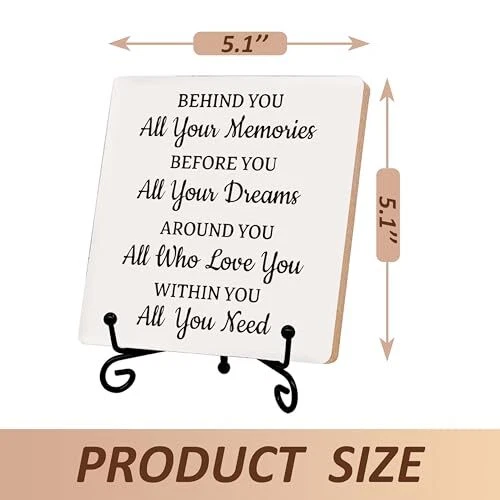 Return Policy Fast Delivery Trusted seller Desk Decorations, Wood Plaque, Motivational Gifts for Friends, BFF, Family, Children, ‘Behind You All Your Memories’, Favors for Birthday, Anniversary, etc., Graduation Gifts, Farewell Gifts. (001) Product Description -The Best Choice for Gifts: You can take this wood plaque as a gift to yourself, and also could gift to your family, friends, colleagues, etc. Our products is perfect to be the best gifts for birthday, valentine’s day, thanksgiving, Christmas, Anniversary, etc. -Delicate Decoration: The wood plaque could be seasonal decoration, daily home decor. This delicate plaque is an ideal decoration for your home, dorm, bedroom, bathroom, living room, classroom, office, Café, etc. -Plaque Size: The wood plaque measures 5.1 x 5.1 inches and 0.23 inches deep. Each pack have 1 set of a wooden plaque and a iron stand. It is easily to be assembled. -Widely Use: It can be placed on desks, bedside table, dining table, shelves, fireplace mantelshelf, windowsill, etc. -Exquisite Design: We design the brilliant product through combining the meaning of the content with the length of the sentence and the unique fonts. Our product carry deep meanings and sentimental value, which could bring cherished memory between you and the recipient. Shipping Returns Payment Shipping Shipping is FREE to all addresses other than APO/PO boxes in the lower 48 states. All our stock ships from US-based warehouses. Shipped via USPS or UPS (depending on location and package weight) Unless stated otherwise, all orders will ship within 24-72 hours of your payment being processed. Check our feedback to see the great reviews of FAST shipping we offer. Returns Seller does not accept returns Payment We currently accept payment via eBay managed payments only. Once payment is cleared, we will dispatch your shipment within 1-3 business days. Please refer to the "Shipping" tab for more information regarding shipping speed to your destination.