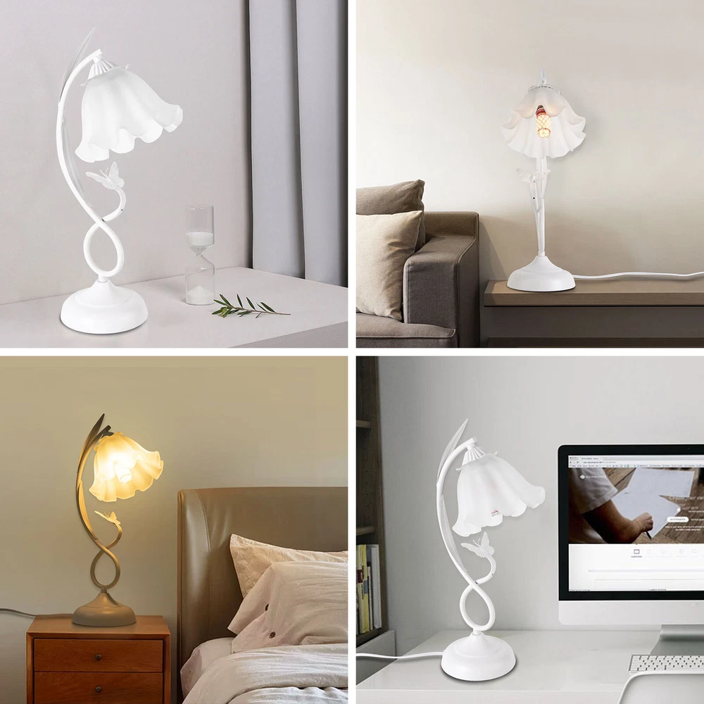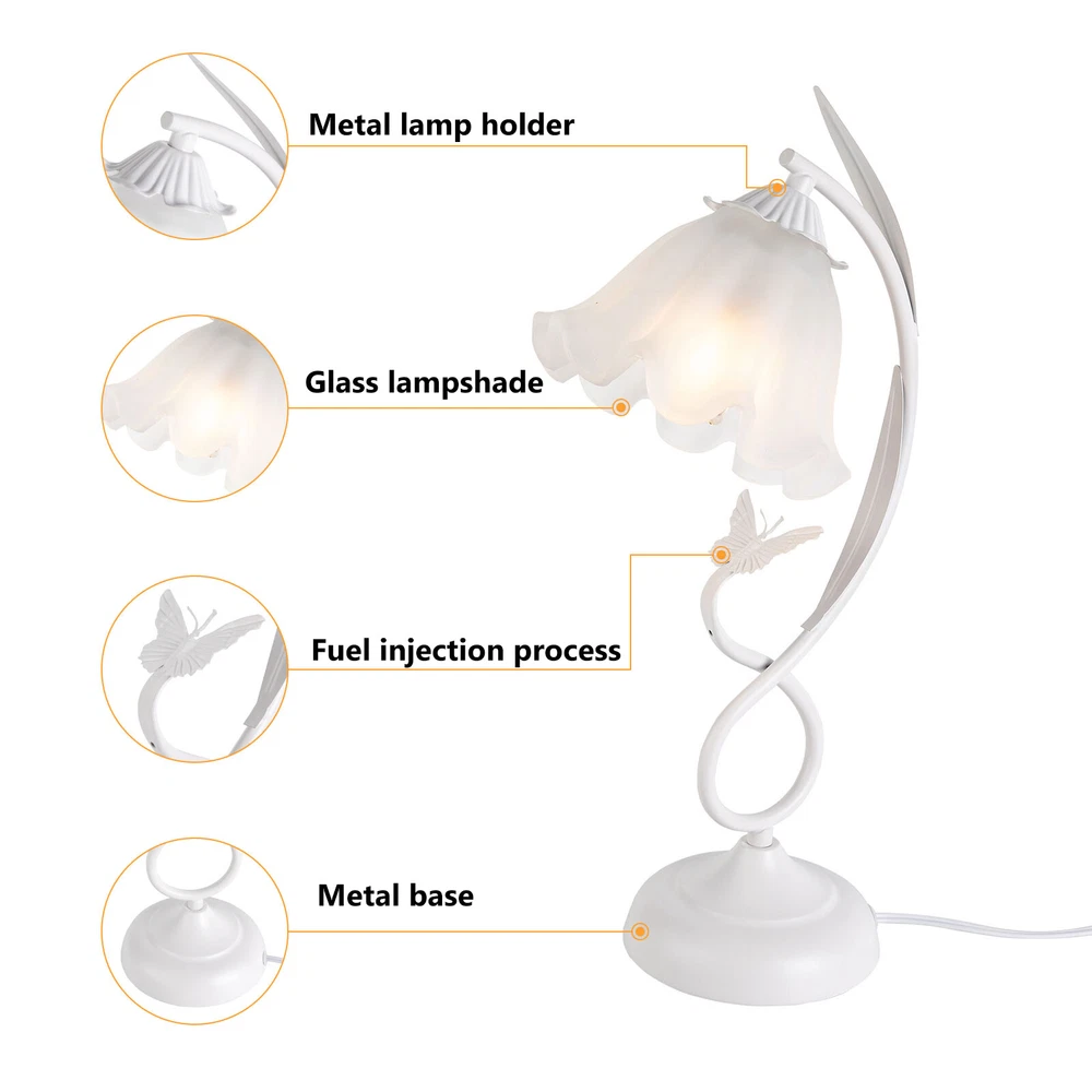 Description Beautiful decorations can make people feel happy, and this flower table lamp not only has a high-value flower appearance but also is very practical. It is made of glass using a painting process, exquisite materials lay a solid foundation for long-term use. The attractive appearance adds color to the dull room. Key Features Sturdy and Durable: Made of high-quality glass and iron with a baking varnish process, it can resist corrosion and high-temperature resistance, while keeping a smoother and more beautiful exterior. Carefully Designed: This product supports the installation of dimming bulbs, which is beneficial for cost savings and protecting your eyes。 Stable Structure: The circular base with an anti-slip pad increases the stress area, further maintaini Desk Decorative Lamp Free Standing Table-Lamp Bedside Flower Shaped Reading Lamp Description Beautiful decorations can make people feel happy, and this flower table lamp not only has a high-value flower appearance but also is very practical. It is made of glass using a painting process, exquisite materials lay a solid foundation for long-term use. The attractive appearance adds color to the dull room. Key Features Sturdy and Durable: Made of high-quality glass and iron with a baking varnish process, it can resist corrosion and high-temperature resistance, while keeping a smoother and more beautiful exterior. Carefully Designed : This product supports the installation of dimming bulbs, which is beneficial for cost savings and protecting your eyes。 Stable Structure: The circular base with an anti-slip pad increases the stress area, further maintaining product stability and protecting your countertop. Attractive Appearance: Compared with traditional lighting fixtures, the flower-like design with vivid leaves and butterflies adds a unique sense of shape to the product, which is more appreciated. Ideal Gift: This product is very in line with the aesthetics of girlfriends, mothers, and others, making it the first choice for gifts to some beauty lovers. Ready to Use: The integrated design allows the product to be received as a complete product, without the need for assembly and can be directly used by screwing on the light bulb. Easy to Clean: The detachable lampshade and simple structure make it convenient for cleaning with water and a soft towel. Protective Package: The packaging box is equipped with anti-collision foam and bubble wrap, which can effectively avoid the loss caused by vibration and collision during transportation, and ensure that you can receive intact products. Quality Service: We stand behind all our guests and look forward to assisting you with your purchase. It is our pleasure to answer your confusion and questions. The end of the story between us is definitely not “we sell and you buy”. Details Long Power Cord: The 4.92ft power cord reduces usage restrictions and further ensures your safety. Practical Lampshade: The glass lampshade makes the product more beautiful and reduces dust. Standard Lamp Holder: The standard E26 lamp holder is compatible with LED, halogen, incandescent lamps, etc., making it easy for you to replace and purchase. Application It is suitable for decorating or lighting your bedside table, coffee table, work table, and other furniture edges. It is suitable for use at home, coffee shops, hotels, etc. Specification Material: Iron + Glass Color: White Surface Treatment: Baking Varnish Style: Modern Shape: Flower Type: US Standard Mount Type: Deck Mounted Assembly Required: No Flower Diameter: 6cm/2.36in Power Cord Length: 1.5m/4.92ft Maximum Bulb Wattage: 60W Power: 110V Efficiency: E Package Included 1* Flower Table Lamp Notes Please note that the wattage of the light bulb should not exceed 60W. The light bulb is not included, you need to prepare an E26 light bulb yourself. Please allow the slight color difference caused by the shooting light and the 1-3 cm error due to manual measurement, and make sure you do not mind before ordering. Payment Delivery details Terms of sales About us Contact us Payment We accept ebay payment 。 Fees such as import duties, taxes are not included in the item price or shipping costs. These charges are the buyer's responsibility. Delivery details Shipping: 2-9 working days to: USA Terms of sales We maintain high standards of excellence and strive for hundred percent customer satisfaction. Feedback is very important to us. We hope that you contact us immediately before you give neutral or negative feedback, so that we can address your concerns. It is impossible to address issues if we do not know about them! About us Your satis faction is our ultimate goal. We work hard to earn your trust and future business. Our certified technicians have tested each item before shipping. The unit comes with 1 year limited warranty on all manufacturing defects. a) If you receive a defective item, you may return it or ask for a discount. Please contact us within 14 days after you receive the package. b) What you returned must be intact and in its original packaging as re? u. Customer is responsible for shipping costs of the returned item. c) We will cover the cost of shipping back t with the shipping rate indicated in the registration page. We will send you a new unit or refund the full payment you paid. Thank you. Contact us Business Hour Business Hour: Monday To Friday: 8:30 AM to 5:00 PM (Beijing China time) Due to time zones, our reply to your questions may not be immediately. But within above working time, we will reply your email within 24 hours. If it's non-workdays, please kindly be patient and wait till Monday. Please contact us with ebay message. Please feel free to contact us if you have any questions. Monday To Friday: 8:30 AM to 5:00 PM (Beijing China time) Due to time zones, our reply to your questions may not be immediately. But within above working time, we will reply your email within 24 hours. If it's non-workdays, please kindly be patient and wait till 