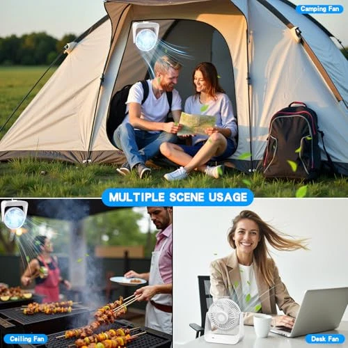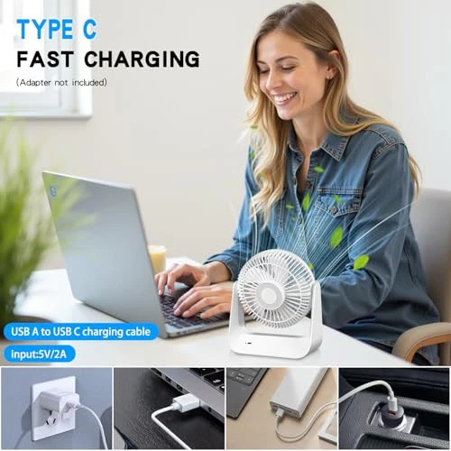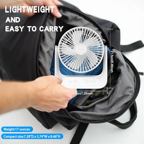 Return Policy Fast Delivery Trusted seller Desk Fan with Temperature control mode, 5000mAh USB Table Fan, 5 Speeds with Strong Airflow, Rechargeable Battery Operated Fan with Light & Hook for Bedroom Office Home Travel Camping Product Description 【Designed for sleep】This upgraded table fan has 5 gears in total. Each short press adds a gear, cycling from gear 1 to 5, and pressing again turns it off. The speed of gears 1 to 4 changes from low to high, and the 5th gear is the automatic temperature control gear (also called sleep mode).this mode can automatically adjust the gear according to the ambient temperature. Notice:Temperature <=18C -- the fan automatically shuts down. 【Multi-function Fan】This usb rechargeable fan integrates a tent fan, night light and temperature control mode, which can evenly circulate air to illuminate your tent and automatically adjust the gear according to temperature changes, so as to avoid catching a cold when the temperature drops while you are sleeping soundly at night. It is very suitable for camping and many other indoor and outdoor occasions. 【Multiple Placement Methods】This desktop fan comes with a built-in hook at the bottom, which can be easily hung on a tent, tree branch or car, or simply placed on a table at home or in the office. It is not only our best choice for indoor and outdoor, but also a good partner for babies and pets. 【Rechargeable Battery&Timing function】This battery-powered fan Powered by rechargeable 5000mAh batteries (built-in),it can last for 5-31 hours depending on speeds. It also operates via USB cable connected to laptop, car charger, Power bank and etc. Perfect fit for both indoors&outdoors.T are four levels(1H/2H/4H/8H) of timing. Use the timing button to adjust the timing duration. Each short press increases the time by one level. 【Portable Fan】The travel fan size is 7.28 x 3.74 x 8.46 Inches, weight is 17oz, easy to take on the go and store. In the hot summer, this ultra quiet small fan can accompany you anytime, anyw, bringing you coolness. It is suitable for living rooms, bedrooms, offices, studios, dormitories, basements, libraries, RV travels, camping, and more. Shipping Returns Payment Shipping Shipping is FREE to all addresses other than APO/PO boxes in the lower 48 states. All our stock ships from US-based warehouses. Shipped via USPS or UPS (depending on location and package weight) Unless stated otherwise, all orders will ship within 24-72 hours of your payment being processed. Check our feedback to see the great reviews of FAST shipping we offer. Returns Seller does not accept returns Payment We currently accept payment via eBay managed payments only. Once payment is cleared, we will dispatch your shipment within 1-3 business days. Please refer to the "Shipping" tab for more information regarding shipping speed to your destination.