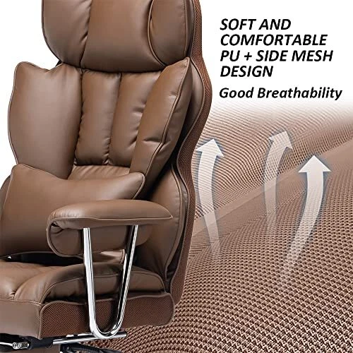 Return Policy Fast Delivery Trusted seller Desk Office Chair 400LBS, Big and Tall Office Chair, PU Leather Computer Chair, Executive Office Chair with Leg Rest and Lumbar Support,Brown Office Chair Product Description ADJUSTABLE OFFICE CHAIR — This executive office chair offers a 360° swivel, allowing you to move freely. It features a height adjustable mechanism, back angle, and tilt/swivel system, enabling you to swing the chair back and forth at any angle up to 135°. The swivel chair with Leg Rest comes with a tilt tension knob that allows you to customize the tension to your personal preference. Experience the comfort and flexibility with this reclining office chair, perfect for your home office desk chair COMFORTABLE OFFICE CHAIR — The white office chair equip a dual-layered sponge seat cushion. The big office chair backrest and independent lumbar support gently wrap around your body ,support your lower back, thoughtfully designed for the big and tall office chair to keep you comfortable during long hours of working, studying, or gaming. The leather office chair provides unparalleled comfort. Moreover,This executive chair with a leg rest can also be used as a cross-legged chair. HEAVY-DUTY LEATHER OFFICE CHAIR— The big and tall office chair, featuring a heavy-duty metal base, is designed to accommodate individuals weighing up to 400 lbs. The comfy office chair boasts a big high back chair design and is upholstered in leather, providing both style and comfort. The executive office chair is equipped with an oversized seat cushion (seat size: 20"D X 23.2"W, 4" thick), ensuring ample space and support. including the ability to sit cross-legged. CERTIFIED QUALITY WIDE OFFICE CHAIR— Every part of the task chair has been carefully selected and crafted, a necessary investment to help customers worry less. the leather material on the office chair gives you a good touch. The office chair with leg rest is not only comfortable but also stylish.Smooth wheels, SGS certified Class 3 gas cylinder, strong supporting metal base, all tested over 100,000 times and certified for safety and quality. BIFIMA certified, the big and tall office chair is rel Work Chair Worry-free Purchase—Customer satisfaction about the modern office chair is our top priority! Rest assured that our office chairs are accompanied by all the necessary hardware and tools for easy installation, The executive desk chair can be easily installed and finished in about 15-30 minutes. If you have any questions about the computer office chair, please don't hesitate to reach out to us. We are committed to providing excellent assistance and support. Shipping Returns Payment Shipping Shipping is FREE to all addresses other than APO/PO boxes in the lower 48 states. All our stock ships from US-based warehouses. Shipped via USPS or UPS (depending on location and package weight) Unless stated otherwise, all orders will ship within 24-72 hours of your payment being processed. Check our feedback to see the great reviews of FAST shipping we offer. Returns Seller does not accept returns Payment We currently accept payment via eBay managed payments only. Once payment is cleared, we will dispatch your shipment within 1-3 business days. Please refer to the "Shipping" tab for more information regarding shipping speed to your destination.