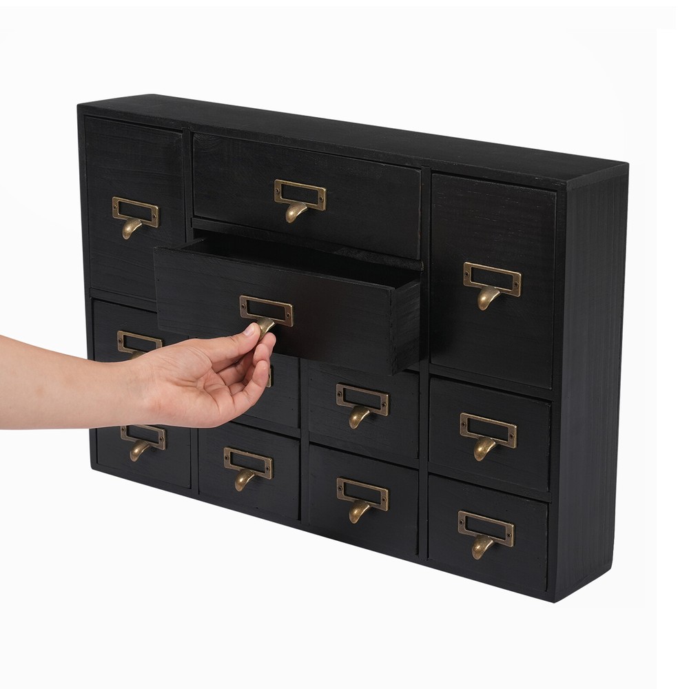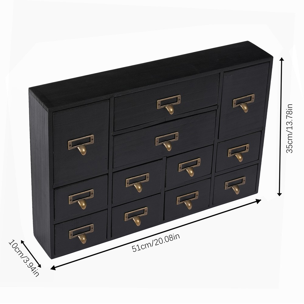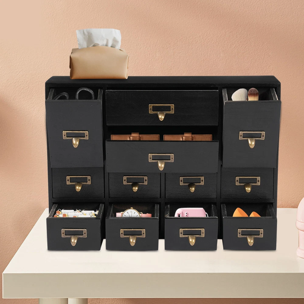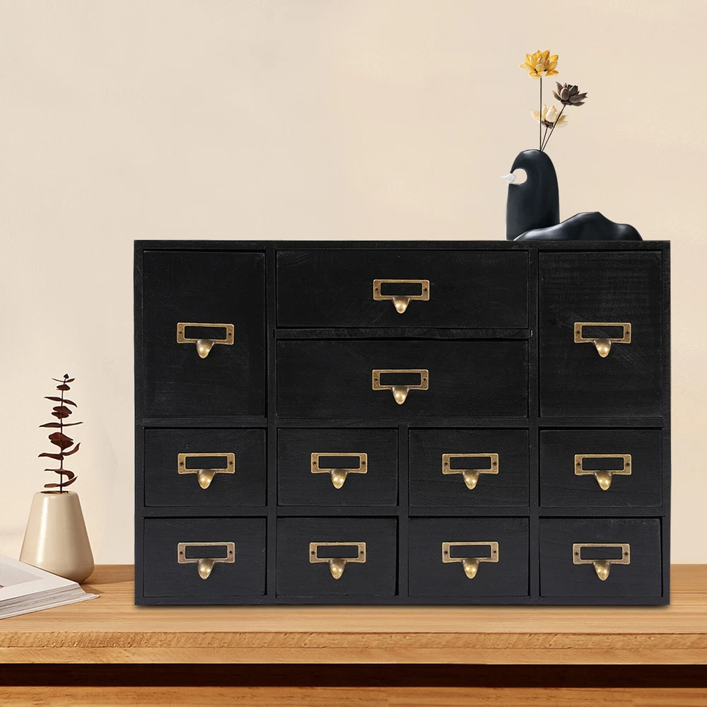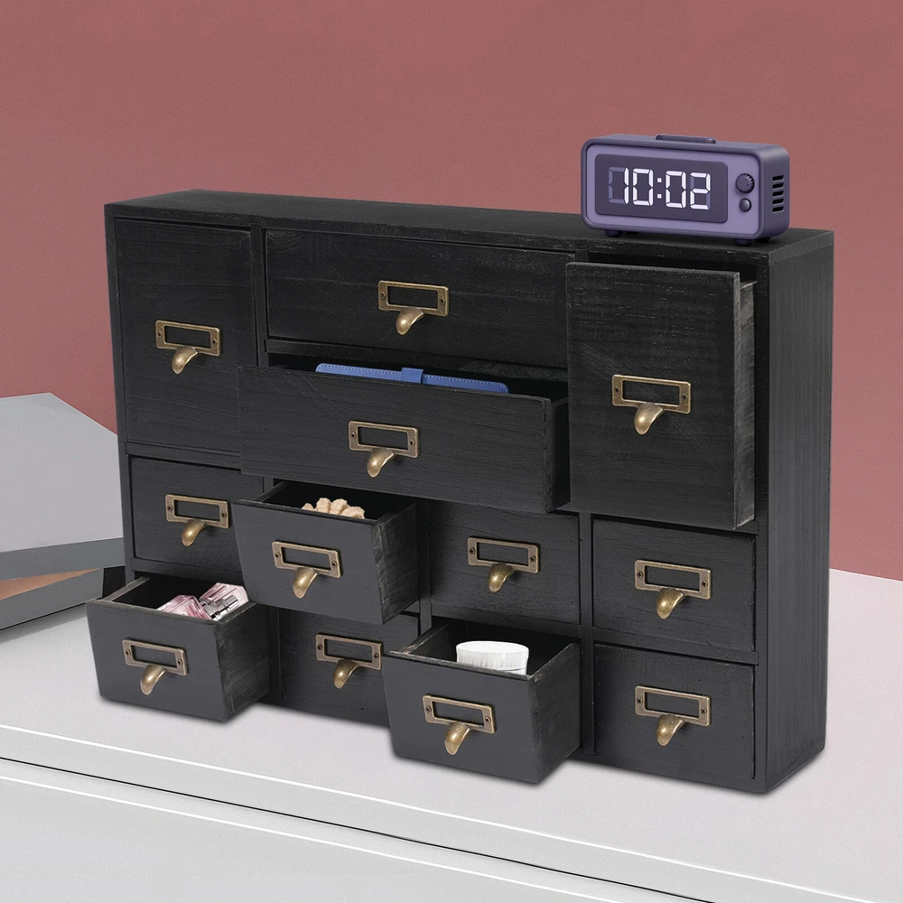 Specification Color: Black Shape: Rectangular Mount Type: Tabletop Assembly Required: No Number of Drawers: 12 Material: Plywood, Pine Wood, Zinc Alloy Process: Spray Painting, Aging Indoor/Outdoor Usage: Indoor Load Capacity: 10kg/22.05lbs Package Size: 54*38*14cm/21.26*14.96*5.51in Product Size: 51*10*35cm/20.08*3.94*13.78in Gross Weight: 5kg/11.02lbs Net Weight: 4.5kg/9.92lbs Package Included 1* Desktop Drawer Organizer Desk Organizer with 12 Drawers Wooden Desktop Storage Cabinet Storage Box Case Description Do you feel annoyed by too many cluttered and unorganized items on your desktop? Our desktop drawer organizer can help you solve this problem. This product is made of high-quality plywood, which is moisture-proof, sturdy, and durable. The 12 drawers are convenient for you to organize different daily items. Our product can effectively help you reduce the pressure on your countertop, which is an ideal choice for you. Key Features Selected Material: The premium plywood and pine wood with spraying painting and aging processes make this product durable, environmentally friendly, and rust-resistant , ensuring a long service life. Elegant Appearance: The classic look and natural wood grain can serve to decorate a room, and it can easily be incorporated into any décor to add a splash of color to a space. Save Space: Its compact size (20.08*3.94*13.78 inches) and 3-tier design make full use of tabletop and vertical space, and keep your room neat and clean. Categorized Storage: The product has 12 independent drawers and comes in three sizes, allowing you to store your items in different drawers according to their size and to be categorized and organized. In addition, the top can also be used to hold items, allowing you to maximize the use of your space. Ready to Go: You can use the product directly after receiving it without installation, which saves you a lot of time. Easy to Clean: Thanks to its simple structure and smooth surface, you can wipe the dirt from it with a soft cloth, which is convenient. Ideal Gift: Thanks to its practicality and beauty, you can give it to your friends as a holiday or housewarming gift! Buy with Confidence: We stand behind all our guests and look forward to assisting you with your purchase. It is our pleasure to answer your confusion and questions. The end of the story between us is not "we sell and you buy". Details Practical Handles: The zinc alloy handles are convenient for you to pull the drawer easily to get the needed items. Label Slot: It is convenient for you to label the outside of the different drawers so you can sort and search. Smooth Edge: The smooth edges not only add to the aesthetics of the product but also improve the safety of use. Application Our products are suitable for use in the home and office for storing documents, office supplies, books, jewelry, remote controls, keys, stationery, diaries and other small items, medicines, jewelry, crafts, cosmetics, oils, office supplies, tea bags, coffee gear, essential oils, lipsticks, children's toys, blocks, pencils, erasers, notebooks, perfumes, nail polish, brushes, earphones, chargers, handicrafts, spare parts, needle and thread supplies, snacks, push pins, mail/receipts, tapes, etc, as well as for organizing cosmetics and other personal items. Specification Color: Black Shape: Rectangular Mount Type: Tabletop Assembly Required: No Number of Drawers : 12 Material: Plywood, Pine Wood, Zinc Alloy Process: Spray Painting, Aging Indoor/Outdoor Usage: Indoor Load Capacity: 10kg/22.05lbs Package Size: 54*38*14cm/21.26*14.96*5.51in Product Size: 51*10*35cm/20.08*3.94*13.78in Gross Weight: 5kg/11.02lbs Net Weight: 4.5kg/9.92lbs Package Included 1* Desktop Drawer Organizer Notes Please note that other objects are not included except the drawer organizer. Please check the size carefully before ordering. Please allow the slight color difference caused by the shooting light and the 1-3 cm error due to manual measurement, and make sure you do not mind before ordering. Payment Delivery details Terms of sales About us Contact us Payment We accept ebay payment 。 Fees such as import duties, taxes are not included in the item price or shipping costs. These charges are the buyer's responsibility. Delivery details Shipping: 2-9 working days to: USA Terms of sales We maintain high standards of excellence and strive for hundred percent customer satisfaction. Feedback is very important to us. We hope that you contact us immediately before you give neutral or negative feedback, so that we can address your concerns. It is impossible to address issues if we do not know about them! About us Your satis faction is our ultimate goal. We work hard to earn your trust and future business. Our certified technicians have tested each item before shipping. The unit comes with 1 year limited warranty on all manufacturing defects. a) If you receive a defective item, you may return it or ask for a discount. Please contact us within 14 days after you receive the package. b) What you returned must be intact and in its original packaging as re? u. Customer is responsible for shipping costs of the returned item. c) We will cover the cost of shipping back t with the shipping rate indicated in the registration page. We will send you a new unit or refund the full payment you paid. Thank you. Contact us Business Hour Business Hour: Monday To Friday: 8:30 AM to 5:00 PM (Beijing China time) Due to time zones, our reply to your questions may not be immediately. But within above working time, we will reply your email within 24 hours. If it's non-workdays, please kindly be patient and wait till Monday. Please contact us with ebay message. Please feel free to contact us if you have any questions. Monday To Friday: 8:30 AM to 5:00 PM (Beijing China time) Due to time zones, our reply to your questions may not be immediately. But within above working time, we will reply your email within 24 hours. If it's non-workdays, please kindly be patient a