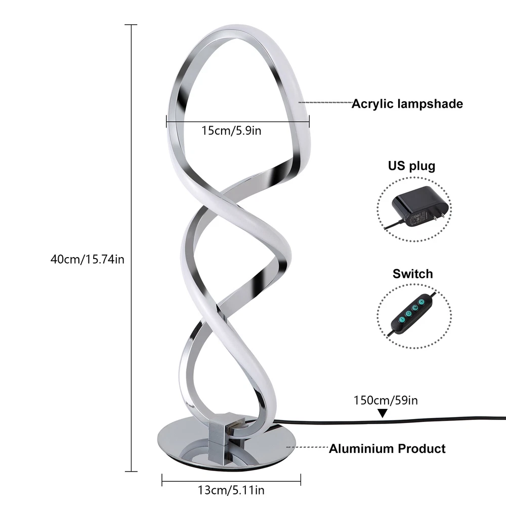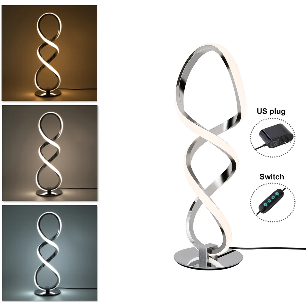 Desktop Corded Bedside Lamp, LED Table Lamp for Bedroom Spiral Table Lamp