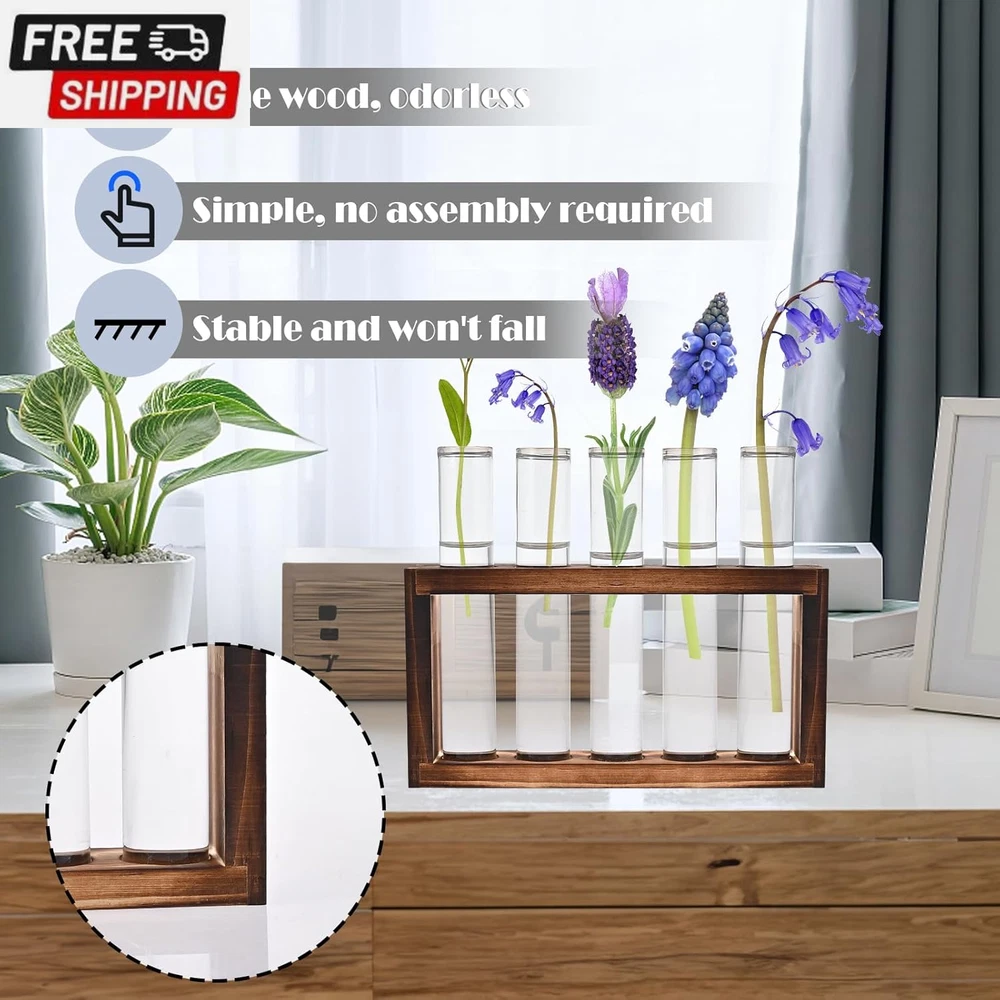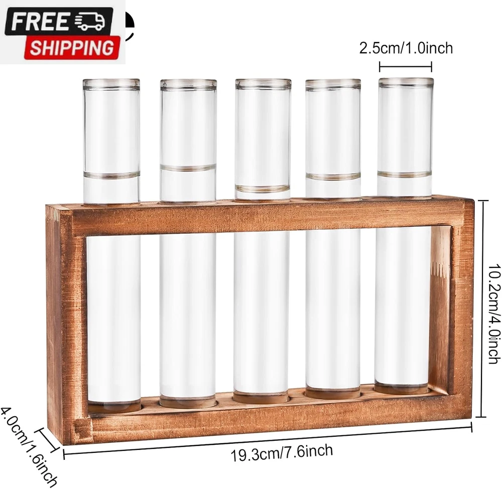 Desktop Glass Plant Propagation Station with 5 Test Tubes in Wooden Stand - Hydroponic Plants Cutting Office Home Decoration and Garden Decor Terrarium 1. Natural and Odorless: Our vintage wooden stand and high boron silicon glass planter bulb vase are made from natural pine wood and odorless materials, ensuring a safe and healthy home decor solution. 2. Durable and High-Quality: Made with high-quality, heat-resistant, and durable material, our hydroponic vase is not easily fragile and will not deform over time. Its excellent light transmission and corrosion resistance ensure lasting beauty for years to come. 3. Elegant Decoration: With a stylish and elegant design, our hydroponic vase is the perfect decor piece for any living room, dining room, kitchen, office, corridor, or window sill. Bring the natural beauty of plants into your life and create a fresh green atmosphere effortlessly. 4. Great Propagator: Our glass container provides ample room for plant roots to grow, making it an ideal propagator for your plant babies. Watch their growth condition with ease and style while enjoying the beauty of nature. 5. Perfect Size: Our hydroponic glass planters are perfect decor pieces for any space, be it your home, office, garden, or wedding. Its compact size ensures ease of use and versatility in any setting. Get yours today and elevate your decor to new heights! Product Description Shipping Fast shipping is very important for us. Our standard US shipping service is FREE. Your order will be shipped within 2-3 business days upon full payment received. Your order will be delivered within 2-3 business days after the handling time. We only ship to the confirmed PayPal address. We reserve the right to cancel any order for any reason at any time. We are not responsible for undeliverable addresses. Returns and payment We offer a 30 days return policy from checkout winning date. We allow only PayPal as payment method FeedBack Your feedback very important to us, after you get your package and you are satisfied with our service please leave us positive feedback If you have any problem with your order / any questions please before leave any type of feedback For any questions, using eBay contact system Please visit our eBay store to check out other items for sale! Thank you for shopping at our store.