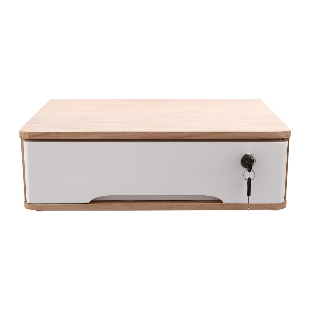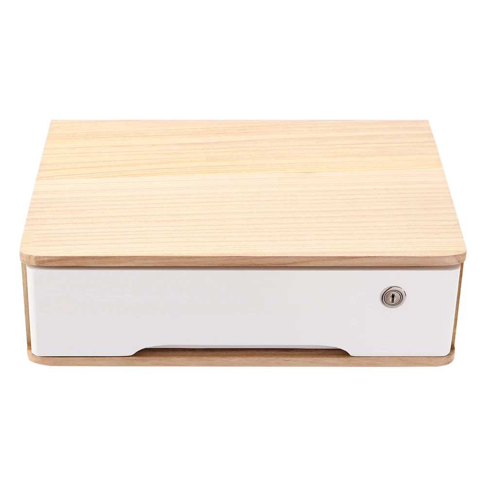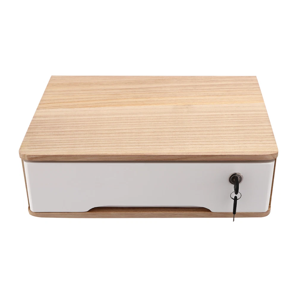 Desktop Storage Box w/ Lockable Drawer Wooden Office Supplies Drawer Organizer Description Do you need an organized space on your desktop? This desktop storage box is the solution you need. Whether you need to store your daily office supplies or personal items, it will meet your needs. The premium wood is durable and the simple construction allows for easy clean-up. The secure lock keeps your stored items away from prying eyes for your convenience. Own it and bring more comfort to your life! Key Features Quality and Sturdy: The product is made of high-quality wood, using oil-based painting technology, with high strength, and wear resistance , ensuring its beauty and long-time use. Storage Assistant: Its considerable capacity drawer can store files, medicines, and other daily necessities, creating a cleaner and tidier office and home environment for you. Meanwhile, the top platform can also place some potted plants, calendars, etc., making full use of the space. Minimalist Style: The original wood color and white with simple rectangular shapes and smooth lines creates a minimalist aesthetic, making it suitable for most office décor and adding a touch of sophistication to your room. Privacy Protection: The locking design ensures that stored items inside are secure and isolated from outside view, and comes with two keys so you don't forget them for your convenience. High Stability : The thickened material and flat rectangular construction give it excellent stability for storing a variety of items without tipping over. Easy to Clean: The smooth surface and angular structure design allow you to easily remove dust from the surface of the product with a towel. Ready to Use : What you receive will be an already assembled product, so you can use it directly, which is very convenient and time-saving. Nice Gift: This practical and beautiful product is a great holiday or housewarming gift for family, friends, and lovers so that they can enjoy a more exquisite life. Details Round Corners: They are burr-free, which is comfortable to touch, and can care for your skin. Recessed Handle: It helps you open and close the drawer conveniently. Non-slip Mat: 4 non-slip pads can be mounted on the bottom to prevent the product from sliding and avoid scratching the table. Application It can be placed in the office, study, dresser, and more to store stamps, sticky notes, paper clips, scissors, bills, pens, pencils, business cards, notepads, jewelry, hair accessories, etc. Specifications Color: Original Wood Color, White Style: Modern Shape: Rectangular Material: Wood Process: Oil-based Painting Mount Type: Tabletop Assembly Required: No Indoor/Outdoor Usage: Indoor Door Style: Drawer, Lock Number of Drawers: 1 Gross Weight: 3kg/ 6.61 lbs Product Size: 40*28*12cm/ 15.75*11.02*4.72 in Package Size: 45*33*17cm/ 17.72*12.99*6.69 in Package Included 1* Desktop Storage Box 2* Keys 4* Non-slip Mats Notes Please note that the log product is subject to wood knots, scabs, mineral threads, etc., but it's normal. Please make sure that you do not mind before purchasing. Please note that this product does not include files and other storage items. Please place the product flat and try to avoid direct sunlight, and please do not put the furniture directly on the air conditioning or warm side, to avoid deformation and cracking of the furniture by moisture. Please allow the slight color difference caused by the shooting light and 1-3cm error due to manual measurement and make sure you do not mind before ordering. Process Oil-based Painting Mount Type Tabletop Indoor/Outdoor Usage Indoor Door Style Drawer, Lock Number of Drawers 1 Gross Weight 3kg/ 6.61 lbs Product Size 40*28*12cm/ 15.75*11.02*4.72 in Package Size 45*33*17cm/ 17.72*12.99*6.69 in Brand Unbranded Item Height 4.72 in Item Length 15.75in Item Width 11.02in Type Desktop Storage Box Material Wood Features Lockable Color Original Wood Color, White Mounting Tabletop Assembly Required No Shape Rectangular Style Modern