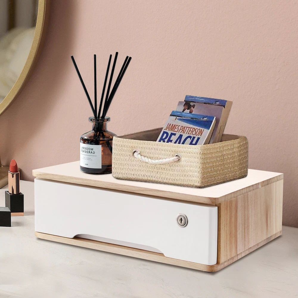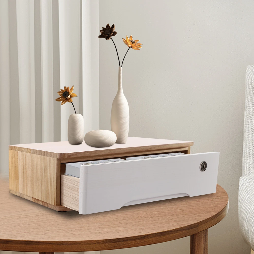Specifications Color: Original Wood Color, White Style: Modern Shape: Rectangular Material: Wood Process: Oil-based Painting Mount Type: Tabletop Assembly Required: No Indoor/Outdoor Usage: Indoor Door Style: Drawer, Lock Number of Drawers: 1 Gross Weight: 3kg/ 6.61 lbs Product Size: 40*28*12cm/ 15.75*11.02*4.72 in Package Size: 45*33*17cm/ 17.72*12.99*6.69 in Desktop Storage Box w/ Lockable Drawer Wooden Office Supplies Drawer Organizer Description Do you need an organized space on your desktop? This desktop storage box is the solution you need. Whether you need to store your daily office supplies or personal items, it will meet your needs. The premium wood is durable and the simple construction allows for easy clean-up. The secure lock keeps your stored items away from prying eyes for your convenience. Own it and bring more comfort to your life! Key Features Quality and Sturdy: The product is made of high-quality wood, using oil-based painting technology, with high strength, and wear resistance , ensuring its beauty and long-time use. Storage Assistant: Its considerable capacity drawer can store files, medicines, and other daily necessities, creating a cleaner and tidier office and home environment for you. Meanwhile, the top platform can also place some potted plants, calendars, etc., making full use of the space. Minimalist Style: The original wood color and white with simple rectangular shapes and smooth lines creates a minimalist aesthetic, making it suitable for most office décor and adding a touch of sophistication to your room. Privacy Protection: The locking design ensures that stored items inside are secure and isolated from outside view, and comes with two keys so you don't forget them for your convenience. High Stability : The thickened material and flat rectangular construction give it excellent stability for storing a variety of items without tipping over. Easy to Clean: The smooth surface and angular structure design allow you to easily remove dust from the surface of the product with a towel. Ready to Use : What you receive will be an already assembled product, so you can use it directly, which is very convenient and time-saving. Nice Gift: This practical and beautiful product is a great holiday or housewarming gift for family, friends, and lovers so that they can enjoy a more exquisite life. Details Round Corners: They are burr-free, which is comfortable to touch, and can care for your skin. Recessed Handle: It helps you open and close the drawer conveniently. Non-slip Mat: 4 non-slip pads can be mounted on the bottom to prevent the product from sliding and avoid scratching the table. Application It can be placed in the office, study, dresser, and more to store stamps, sticky notes, paper clips, scissors, bills, pens, pencils, business cards, notepads, jewelry, hair accessories, etc. Specifications Color: Original Wood Color, White Style: Modern Shape: Rectangular Material: Wood Process: Oil-based Painting Mount Type: Tabletop Assembly Required: No Indoor/Outdoor Usage: Indoor Door Style: Drawer, Lock Number of Drawers: 1 Gross Weight: 3kg/ 6.61 lbs Product Size: 40*28*12cm/ 15.75*11.02*4.72 in Package Size: 45*33*17cm/ 17.72*12.99*6.69 in Package Included 1* Desktop Storage Box 2* Keys 4* Non-slip Mats Notes Please note that the log product is subject to wood knots, scabs, mineral threads, etc., but it's normal. Please make sure that you do not mind before purchasing. Please note that this product does not include files and other storage items. Please place the product flat and try to avoid direct sunlight, and please do not put the furniture directly on the air conditioning or warm side, to avoid deformation and cracking of the furniture by moisture. Please allow the slight color difference caused by the shooting light and 1-3cm error due to manual measurement and make sure you do not mind before ordering. Payment Delivery details Terms of sales About us Contact us Payment We accept ebay payment 。 Fees such as import duties, taxes are not included in the item price or shipping costs. These charges are the buyer's responsibility. Delivery details Shipping: 2-9 working days to: USA Terms of sales We maintain high standards of excellence and strive for hundred percent customer satisfaction. Feedback is very important to us. We hope that you contact us immediately before you give neutral or negative feedback, so that we can address your concerns. It is impossible to address issues if we do not know about them! About us Your satis faction is our ultimate goal. We work hard to earn your trust and future business. Our certified technicians have tested each item before shipping. The unit comes with 1 year limited warranty on all manufacturing defects. a) If you receive a defective item, you may return it or ask for a discount. Please contact us within 14 days after you receive the package. b) What you returned must be intact and in its original packaging as re? u. Customer is responsible for shipping costs of the returned item. c) We will cover the cost of shipping back t with the shipping rate indicated in the registration page. We will send you a new unit or refund the full payment you paid. Thank you. Contact us Business Hour Business Hour: Monday To Friday: 8:30 AM to 5:00 PM (Beijing China time) Due to time zones, our reply to your questions may not be immediately. But within above working time, we will reply your email within 24 hours. If it's non-workdays, please kindly be patient and wait till Monday. Please contact us with ebay message. Please feel free to contact us if you have any questions. Monday To Friday: 8:30 AM to 5:00 PM (Beijing China time) Due to time zones, our reply to your questions may not be immediately. But within above working time, we will reply your email within 24 hours. If it's non-workdays, please kindly be patient and wait till Monday. Please contact us with ebay message. Please feel free to contact us if you have any questions. Brand Unbra