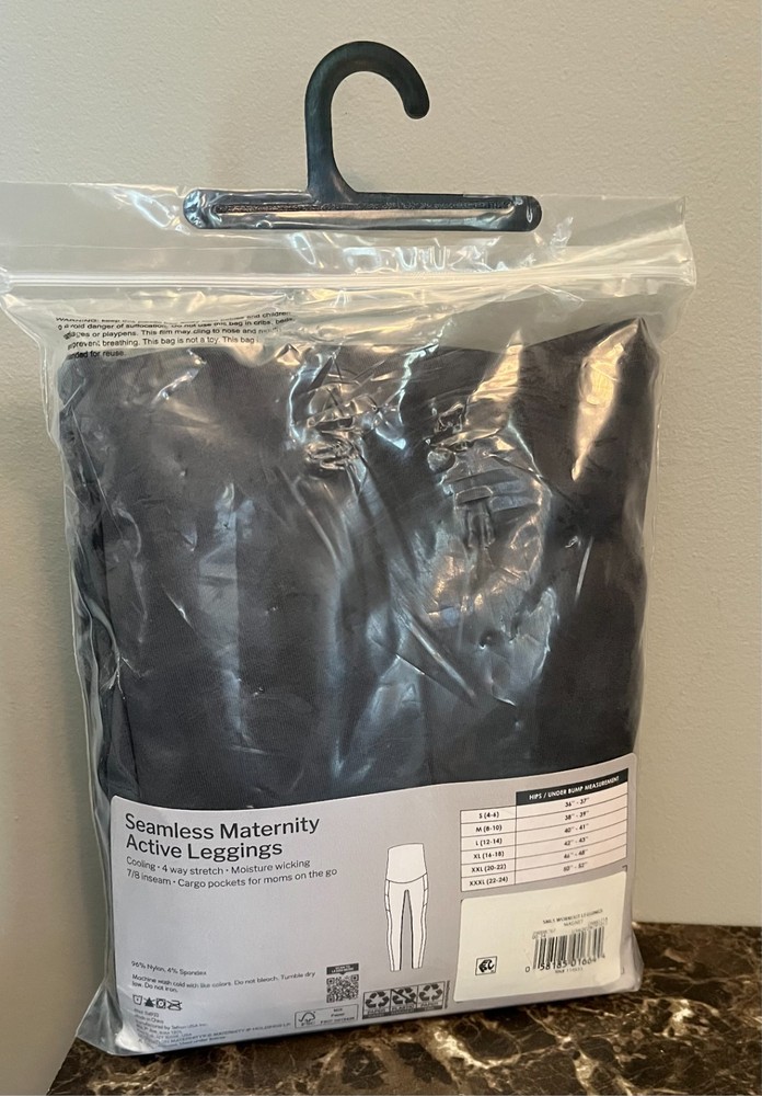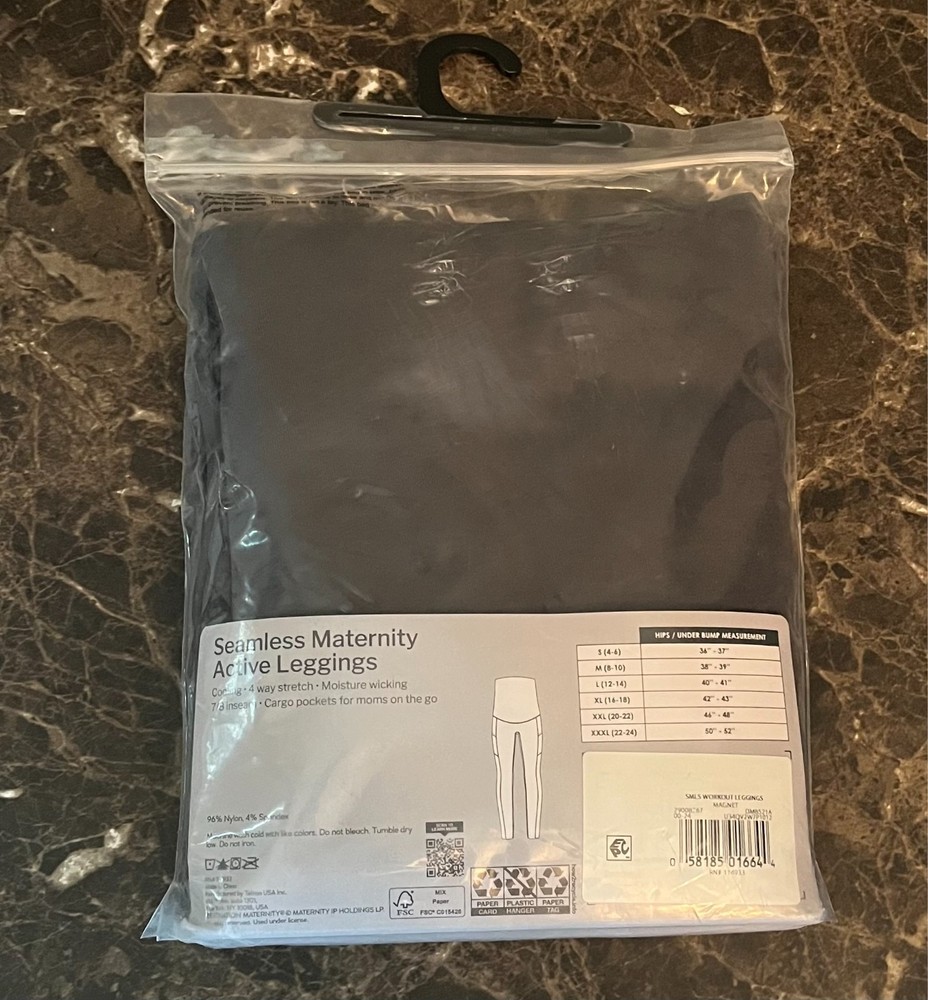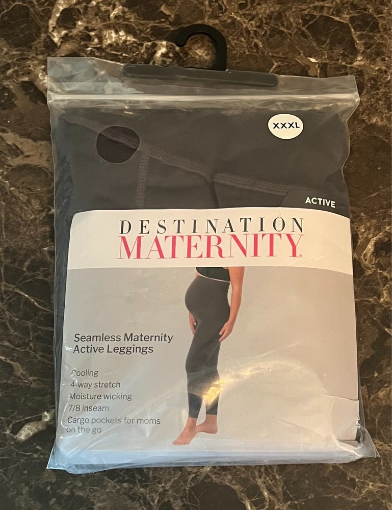 The Destination Maternity Seamless Maternity Active Leggings in size XXXL are designed specifically for active women in their maternity stage. These solid black leggings feature a seamless construction for a comfortable and stretchy fit. Made of 96% Nylon and 4% Spandex, these ankle-length leggings are perfect for on-the-go and casual wear, offering both style and functionality for expectant mothers. Buy today !!