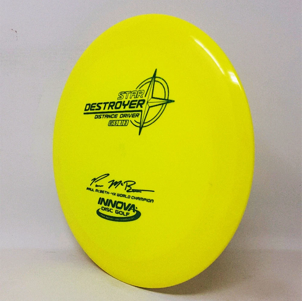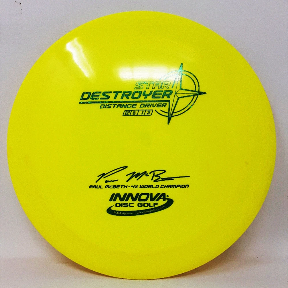 Model: Destroyer Stamp / Foil Color: Green UPC: Does not apply Weight: 176g gtin13: Does not apply Color: Yellow Disc Weight: 176 grams MPN: IN-ST Country/Region of Manufacture: United States Brand: Innova Disc Color: Yellow Type: Disc Golf Disc Plastic: Star