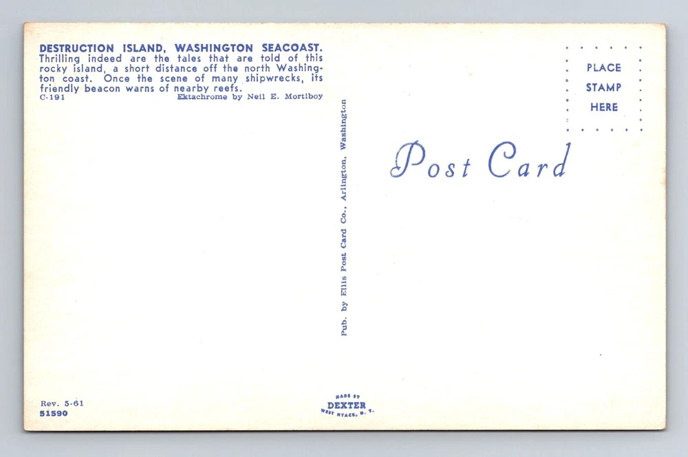 Postage Condition: Unposted Original/Licensed Reprint: Original Country/Region of Manufacture: Unknown Material: Paper Size: Standard (5.5 x 3.5 in) Era: Vintage Country: USA Type: Printed (Lithograph) Subject: Cities & Towns Unit of Sale: Single Unit Region: Washington City: Destruction Island Theme: Cities & Towns