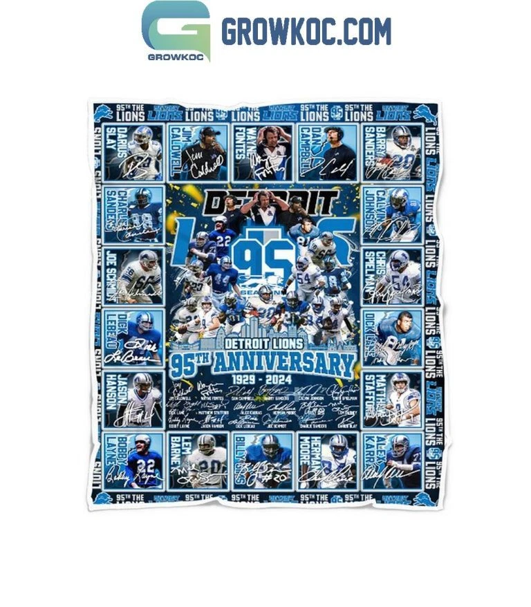 Detroit Lions 95th Anniversary 1929-2024 Sherpa Blanket Quilt