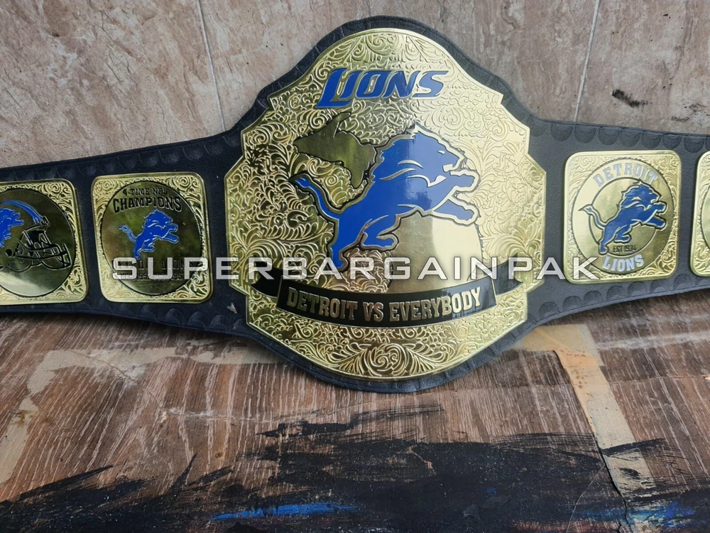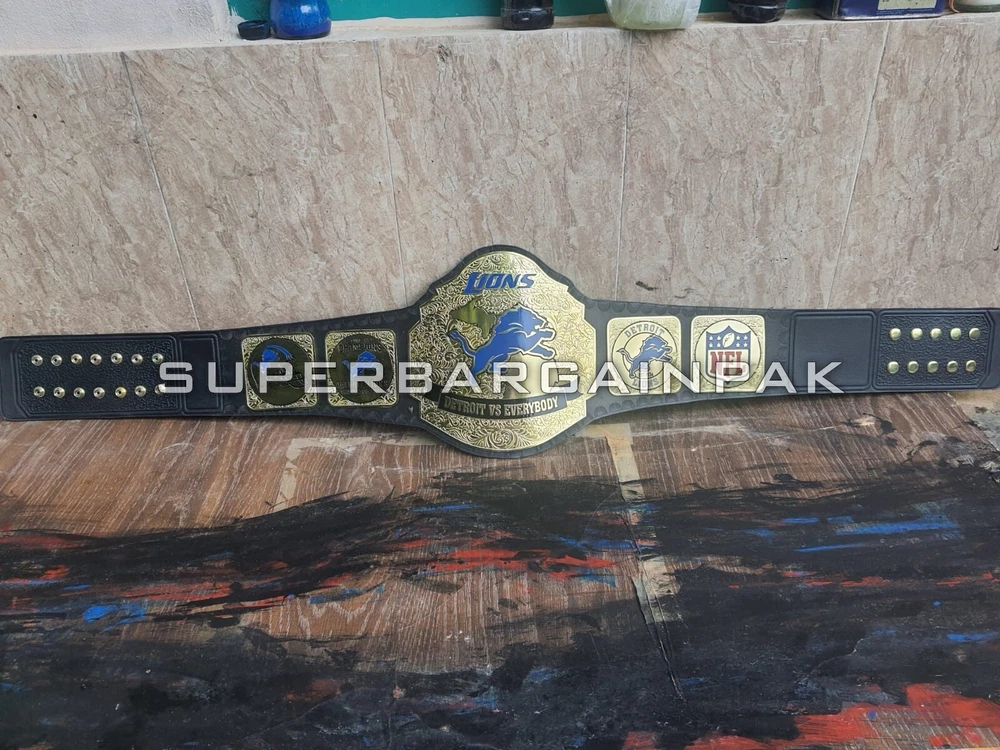 Welcome to our shop ------------------------------------------- We are specialist in manufacturing handmade products:: Our wide range of products include: >>>>Championship Belts WWE | WWF | AEW | UFC | WBC | WCW Product Description ** Detroit Lions Championship Belt 2mm Brass *** Plate Metal: Brass (Zinc available on request with additional cost) Strap: 100% Leather Largest Waist Size: Fits upto 46'' Belt Length: ~50" Weight: 4.17 lbs | 1.81 Kg Plate Thickness: 2mm (4mm Version available on demand with additional cost) ::The belt is well crafted and manufactured to meet the quality demands of fans:: Get your hands on this marvelous piece now! Note: If you need further details kindly inbox us, we will try to be as responsive as possible. ------------------------------------------- Return Policy: Generally we don't have much complains on our products and we make sure to 100% satisfy our clients. We send the product in well Bubble Wrapped packaging so there is highly unlike chance of getting damaged item. In case there is a damage, we will try to give partial refund or you can ask for full refund within 30 days after returning the belt to origin. NOTE: 1. If you have placed the order by mistake or you have purchased a wrong item then we are not going to refund that. 2. Buyer will pay the shipping fee of returning the belt. ------------------------------------------- Happy Shopping! :)