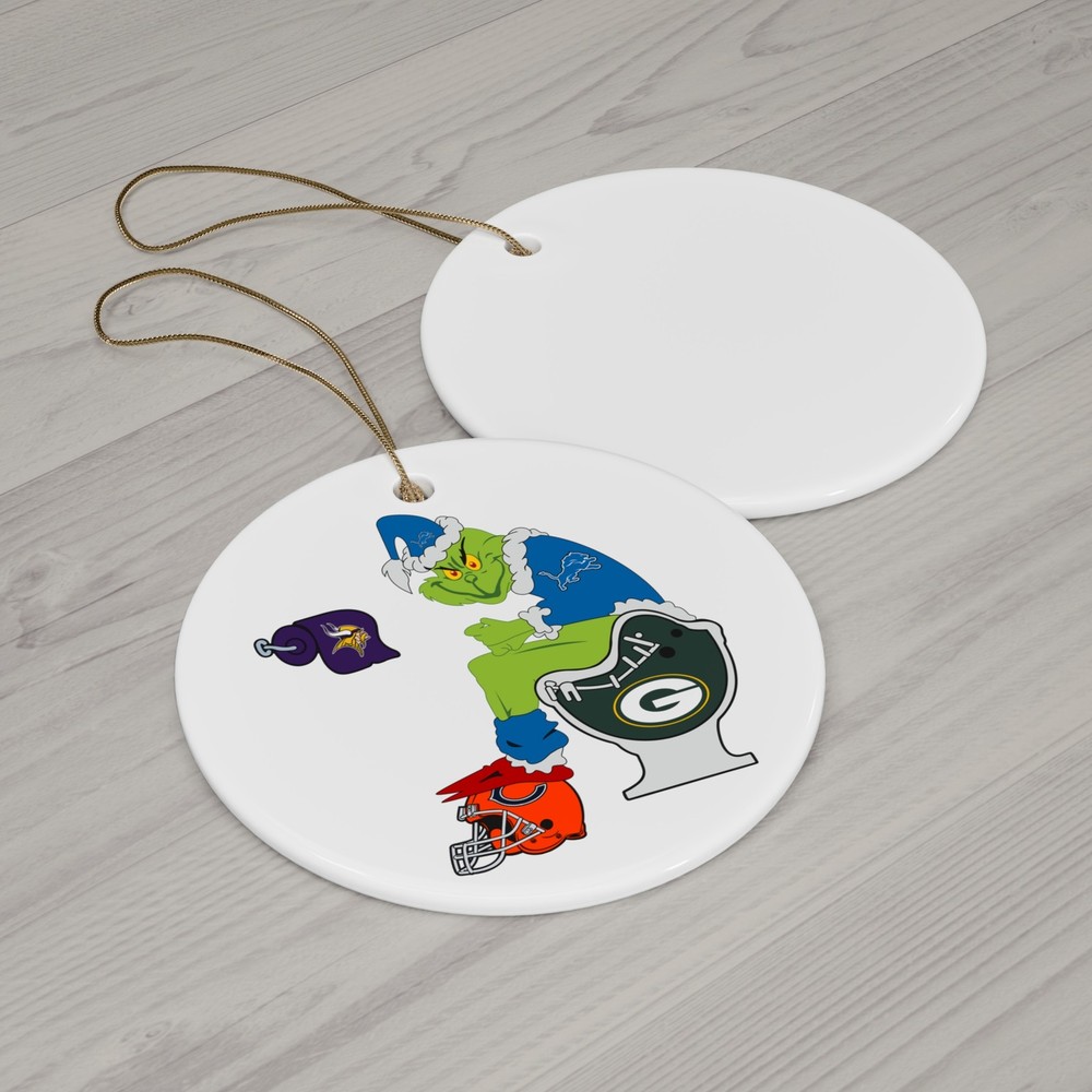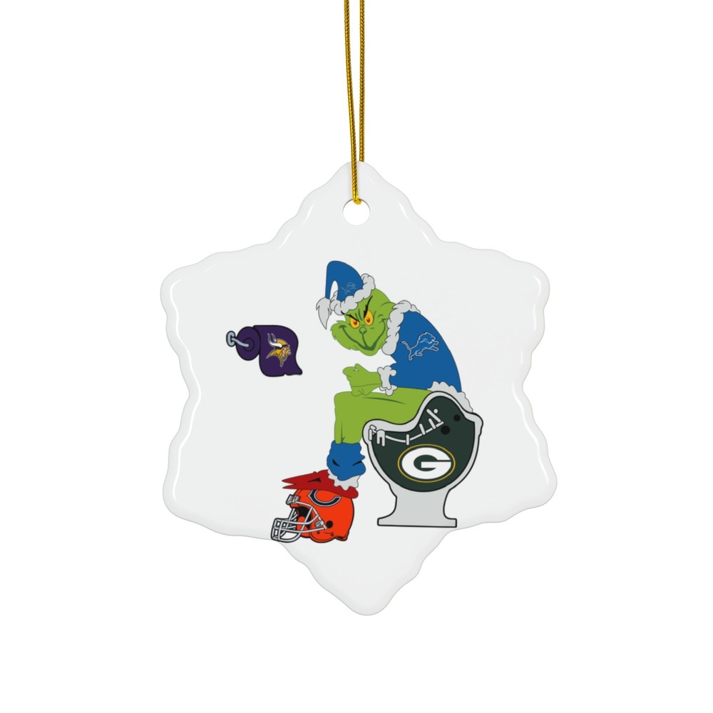 This Detroit Lions Grinch Sits On Toilet NFC North Funny Christmas Ornament will add a humorous touch to your holiday decor. Perfect for Detroit Lions fans or football enthusiasts, this ornament features vibrant colors and a glossy finish. Hang it on your Christmas tree or display it in your home to bring some festive cheer. Product features - Vibrant colors for bold designs - Solid one-piece construction for durability - Available in 2 shapes - Snowflake and Circle - Glossy finish for a polished look - Hole and gold-toned hanging string included Care instructions - Gently wipe the dirt or dust off with a clean, dry microfiber cloth