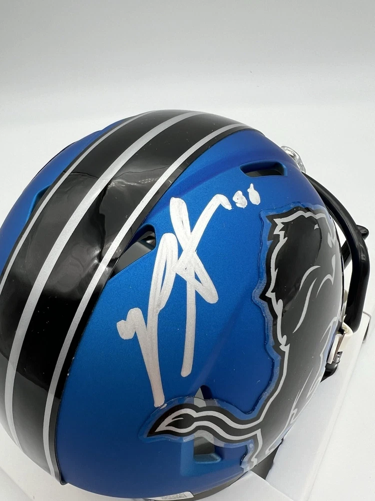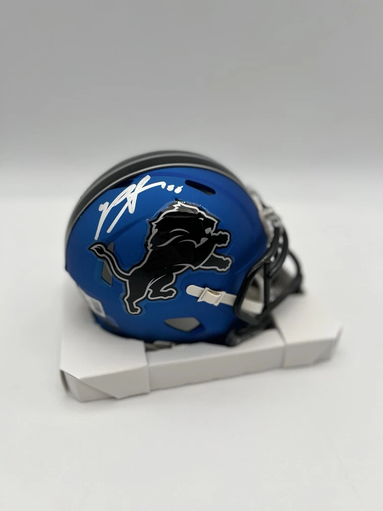 Showcase your love for the Detroit Lions with this autographed Riddell Alt Mini Helmet. The helmet is signed by Penei Sewell, a rising star in the football world. It is an original piece and comes with a Beckett Certificate of Authenticity (CoA) for added assurance. This mini helmet is perfect for any fan or collector looking to add a unique piece to their collection. It is a great way to show support for your favorite team and player. Get your hands on this one-of-a-kind item today!