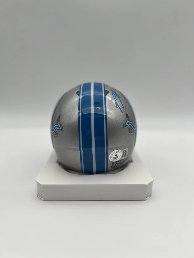 This Riddell mini helmet is a must-have for any Detroit Lions fan! It features the autograph of Penei Sewell, a rising star in the NFL. The helmet is an original product and comes with a Beckett Certificate of Authenticity (CoA) for added peace of mind. As a football fan, you understand the value of a good helmet. This one is perfect for displaying in your home or office. Whether you're a die-hard Detroit Lions fan or just a collector of sports memorabilia, this autographed helmet is a great addition to your collection.