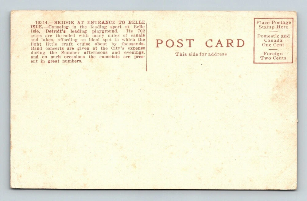 Detroit MI-Michigan, Belle Isle Entrance Bridge, Period Car Vintage Postcard