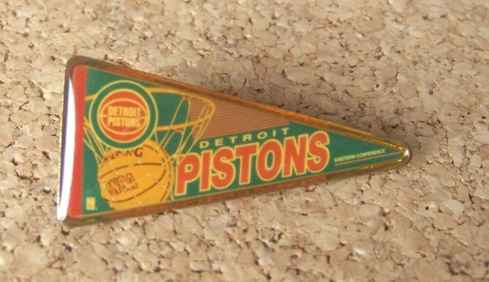 Detroit Pistons pennant lapel pin Item Description: Pin: post and butterfly clip backed and gold tone backed Pin Size: measures about 1.8" wide Pin Condition: Although unused, there are minor nicks and marks and the pin has yellowed. Packaging: none Packaging condition: n/a Shipping: Shipping Time : 1 business day of receiving cleared payment, Mondays thru Fridays. U.S.A. Shipping Costs: FREE! Payment: PayPal is the fastest method, just use the link after buying the listing. Return Policy: Returns accepted, buyer pays return shipping unless there’s an error on seller’s part. Additional Information: Full e-mail support for inquiries or problems. HIGH COUNTRY COLLECTIBLES Since 1989 – A LEADER IN THE DENVER SPORTS MEMORABILIA MARKET. Check out my other auctions and listings, and keep an eye out for the different, unusual, and EXCLUSIVE items available nowhere else but from High Country Collectibles. Don’t forget to click on my "Stores" link, next to my eBay name, to see other items I currently have listed for sale, or you can copy and paste this address into your browser: stores.ebay.com/highcountrycollectibles