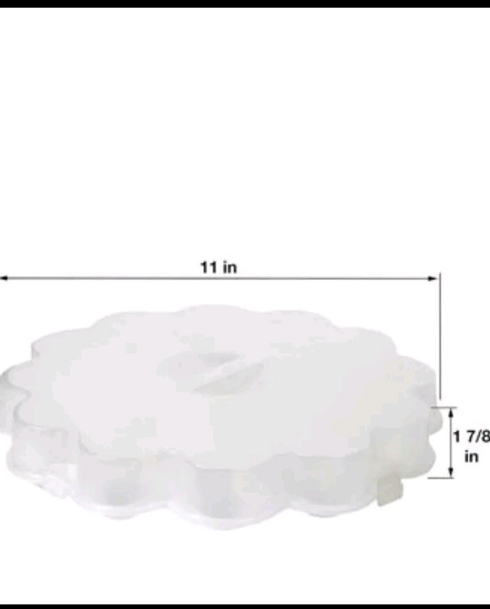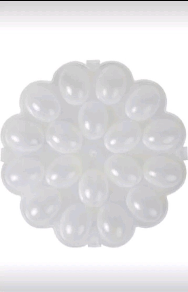 Shape: Round Set Includes: Lid Number of Items in Set: 1 Character: Easter Theme: Food/Kitchen Item Length: 11 in Color: White Personalization Instructions: -- Style: Modern Type: Egg Storage Container Character Family: -- Brand: Unbranded Personalize: No Item Height: 1 7/8 In Lid Type: Handle Item Width: 11 in Material: Plastic Country/Region of Manufacture: Unknown Capacity: 18 Features: Airtight, Dishwasher Safe, Easy Clean, Reusable, With Handle, With Lid MPN: NA
