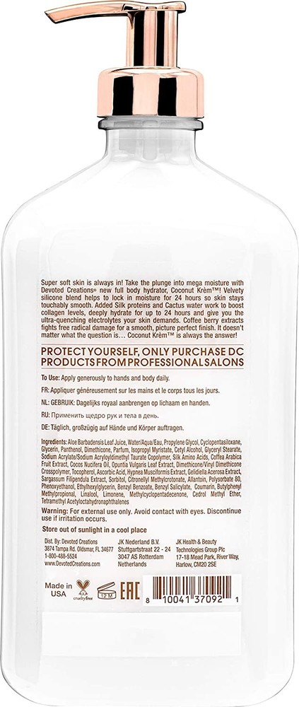 Devoted Creations Coconut Krem Silicone Moisturizer 18.25 Oz Lotion.
