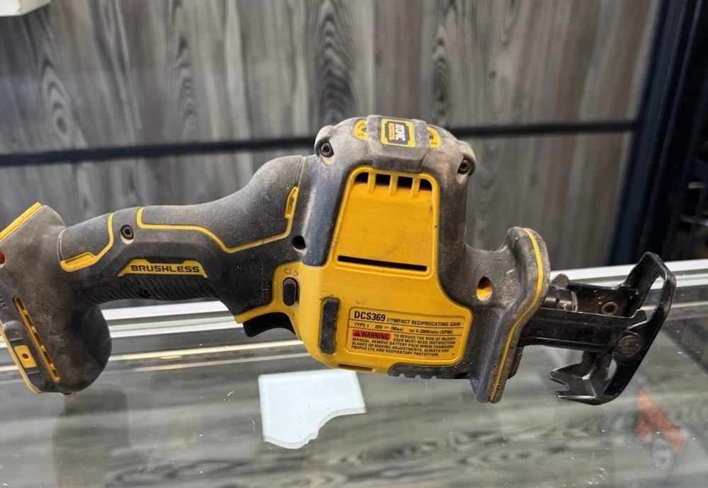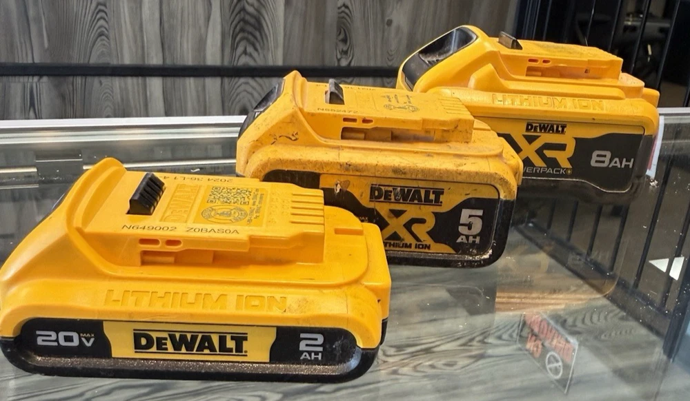 5 Piece Dewalt Tool Set With 3 Batteries, Charger, and Bag DCF809- Atomic 1/4" Impact Driver, Brushless- Good Condition with normal signs of use/wear, including peeling label, shown in photos. Tested, Works Great DCD794- Atomic 1/2" Drill Driver, Brushless- Fair Condition, Definite signs of use/wear, including scuffs/scrapes to chuck, Shown in photos. Tested, Works Great DCL040- LED Work Light, Great Condition with minimal signs of use/wear, including scratches to light cover, does not affect function. Tested, Works Great DCS369- Atomic Reciprocating Saw, Brushless- Good Condition, Definite Signs of use/wear, including scuffs to shoe, shown in photos. Tested, Works Great. DCS565- 6.5" Sidewinder Style Circular Saw, Brushless. Great Condition with normal signs of use/wear. Tested, Works Great. DCB1104- 4 Amp Battery Charger- Great Condition with minimal signs of use/wear. Tested, Works DCB2108- 8AH Battery, 20V MAX XR PowerPack, Great Condition with normal sign of use/wear. Tested and works. DCB205- 5AH Battery, 20V MAX Premium, Fair Condition with definite signs of use/wear, shown in photos. Tested, Works DCB203- 2AH Battery, 20V MAX. Good Condition with minimal signs of use/wear. Tested, works Also included, Large Dewalt tool bag, Good Condition with definite signs of use/wear, shoulder strap pad is torn, shown in photos. Bag is sturdy and fully functional.
