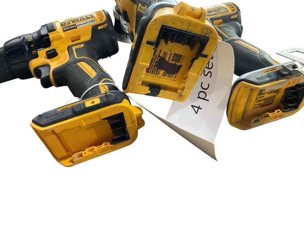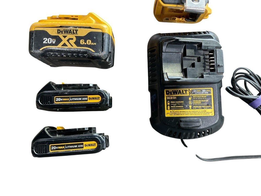 Comes with circular saw DCS391, Drill dcd777, driver dcf887, oscillating Multi tool dcs356, 1 charger, 2 dcb201 batteries, 1 dccb206 6ah battery. Items are used in various condition, they have some writing on them and wear and tear from use. Please reach out with any questions you may have before your purchase. Thank you. E75002283