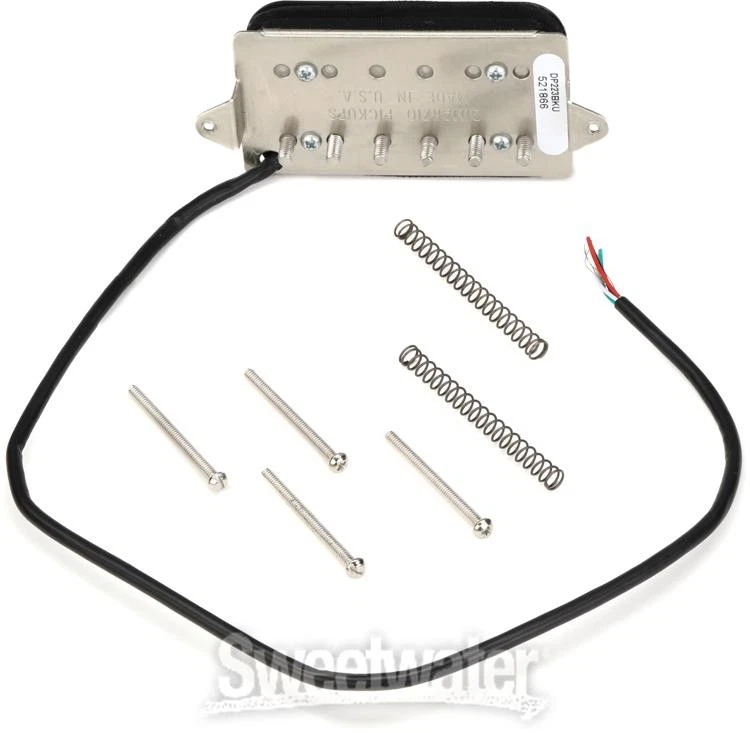 The DiMarzio PAF 36th Anniversary bridge pickup melds precise articulation with impressive output, delivering incredibly sweet tone and a beautiful blend of warmth and clarity. When we tested the PAF 36th Anniversary here at Sweetwater, we were stunned by how easily you can take this responsive pickup from clean to dirty with a subtle change in your pick attack. The PAF 36th Anniversary mimics the magnetic field of a 1959 Les Paul's humbuckers, allowing your strings to vibrate longer, while yielding amazing, single-coil-like definition. A 42-gauge custom-coated wire puts this pickup's frequency response right in the sweet spot. The DiMarzio PAF 36th Anniversary bridge pickup has all of the characteristics of the legendary humbuckers of Sweetwater is an Authorized DiMarzio Dealer Genuine New Item Sweetwater's 2-year warranty* DiMarzio DP223 PAF 36th Anniversary Bridge Humbucker Pickup - Black Humbucking Electric Guitar Pickup - Bridge, Black The DiMarzio PAF 36th Anniversary bridge pickup melds precise articulation with impressive output, delivering incredibly sweet tone and a beautiful blend of warmth and clarity. When we tested the PAF 36th Anniversary here at Sweetwater, we were stunned by how easily you can take this responsive pickup from clean to dirty with a subtle change in your pick attack. The PAF 36th Anniversary mimics the magnetic field of a 1959 Les Paul's humbuckers, allowing your strings to vibrate longer, while yielding amazing, single-coil-like definition. A 42-gauge custom-coated wire puts this pickup's frequency response right in the sweet spot. The DiMarzio PAF 36th Anniversary bridge pickup has all of the characteristics of the legendary humbuckers of yesteryear. Specification Detail Type Humbucker Position Bridge Active/Passive Passive Magnet Material Alnico V Number of Conductors 4 wire plus ground DC Resistance 8.6K Connectivity Soldered Number of Strings 6 Covering Uncovered Color Black Format PAF RETURN INFORMATION We want you to be completely happy with your purchase from Sweetwater. If you are not satisfied with your product, you may return it for a refund of the purchase price within 30 days. If your purchase was eligible for Free Shipping, the shipping cost will be deducted from your credit or refund. Returns must be in the complete and original packaging with all accessories and complete documentation (Owner's Manual, warranty card, quick start guides, etc.), show no signs of wear or use, and include a Return Authorization number or be subject to a restocking fee. Fast, FREE Shipping! Nearly every order received by 3PM Eastern ships the SAME DAY! FREE shipping to lower 48 states. Our central location reaches most states in 1-4 business days 99.95% warehouse accuracy We are proud to provide some of the fastest turnaround times on eBay. We use FedEx or UPS for most items, and USPS for smaller items. Residents of Hawaii, Alaska, and Puerto Rico should contact us for a shipping quote. PLEASE NOTE: We cannot ship large items to PO boxes, please provide an alternate address. If you have questions, feel free to contact us. Buy with confidence! Sweetwater's been selling on eBay since 2001, with 99.9% positive feedback! More than 30 years in business World-class customer service Fast, FREE shipping Free 2-year warranty on nearly every product* Free tech support from audio experts *Please reach out for warranty information