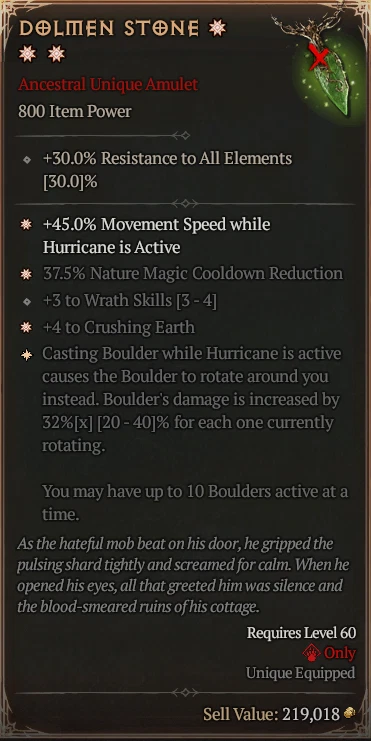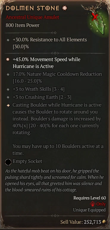 Diablo 4šŸ”„Season 7 SoftcorešŸ”„Dolmen Stone DRUID Unique Amulet HIGH Rolls