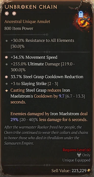 Diablo 4šŸ”„Season 7 SoftcorešŸ”„Unbroken Chain BARBARIAN Unique Amulet