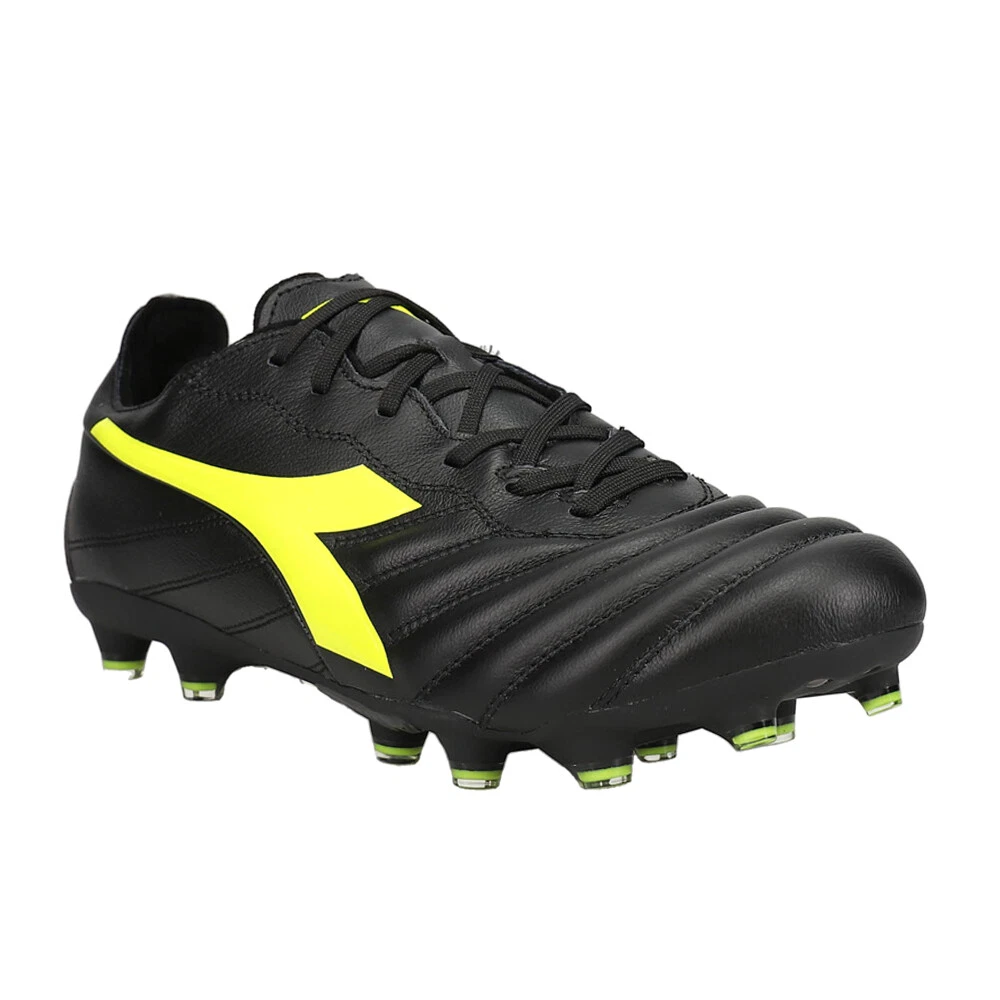 Brasil Elite 2 LT LP12 Soccer Cleats Product Details Ultra-soft, water-resistant full-grain calfskin Lace-up Removable insole Lightweight polyurethane of varying hardness with 12 fixed studs Brasil Elite 2 LT LP12 is the men’s football boot that is perfect for firm grassy or earthy ground. These boots are made up of an ultra-soft, water-resistant full-grain calfskin upper with a non-stretch fabric lining, non-slip Polyurethane heel lining, and insole with flex points on the ball of the foot Additional Details Color: Black Occasion: Casual Gender: Mens Age: Adult Brand: Diadora