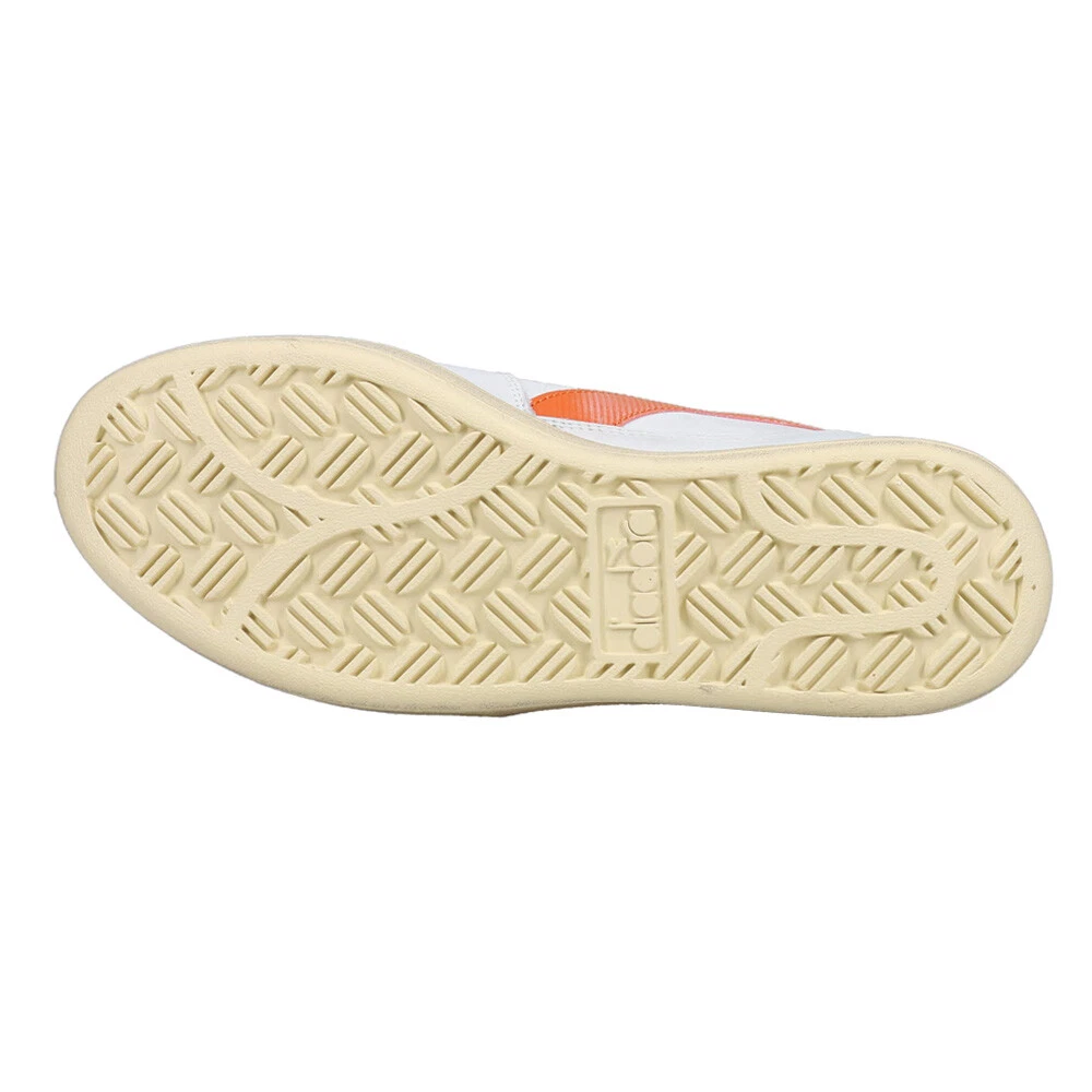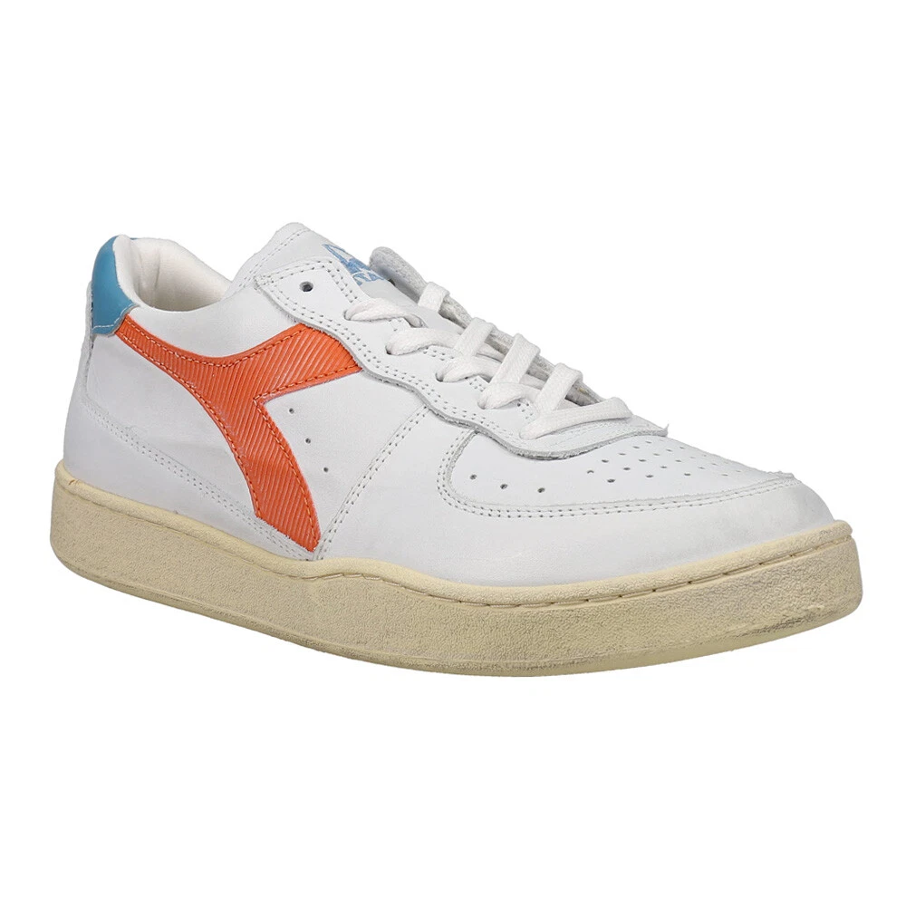 Mi Basket Low Used Lace Up Sneakers Product Details Leather upper with stone wash and wax treatment Lace up closure with cotton waxed laces Removable insole Rubber outsole It’s 1984 and a pair of trainers are writing the history of basketball: we’re talking about the Mi Basket. Here the iconic style is presented in its Mi Basket Low Used version: full-grain leather with a special stonewash treatment. Additional Details Color: Orange, White Occasion: Casual Gender: Mens Age: Adult Brand: Diadora