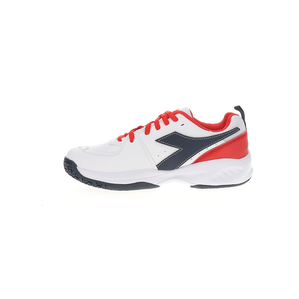 S. Challenge 5 SL Tennis Shoes (Little Kid-Big Kid) Product Details Synthetic and Mesh upper CCB cushioning Ethylene vinyl acetate midsole Thermoplastic rubber outsole S. Challenge 5 SL is a tennis shoe designed for junior tennis beginners. Made with Thermo plastic Rubber outsole, SuprellTech and mesh upper, cotton jersey and printed Ethylene Vinyl Acetate foam, printed Ethylene Vinyl Acetate foam midsole with C.C.B. Additional Details Color: Blue, Red, White Occasion: Casual Gender: Boys Age: Youth Brand: