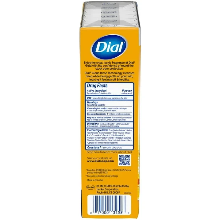 Dial Advanced Clean Antibacterial Deodorant Bar Soap eliminates 99.9% of bacteria encountered in household settings Dial is the #1 antibacterial bar soap brand* Formulated with Dial Clean Rinse Technology, this bar of soap cleanses deep while being gentle on skin This antibacterial body soap bar gives an ultimate shower experience, along with round-the-clock odor protection Enjoy the crisp, iconic fragrance of Dial Gold Soap Bar - it leaves your skin feeling clean, soft, and moisturized Feel good about using this Dial Advanced Clean Antibacterial Soap Bar as it is dermatologist tested Formulated without SLS/SLES, parabens, phthalates & silicones. Approved as cruelty free under the Leaping Bunny program *Based on Circana MULO unit sales data for the 52 wk period ending 6/15/25