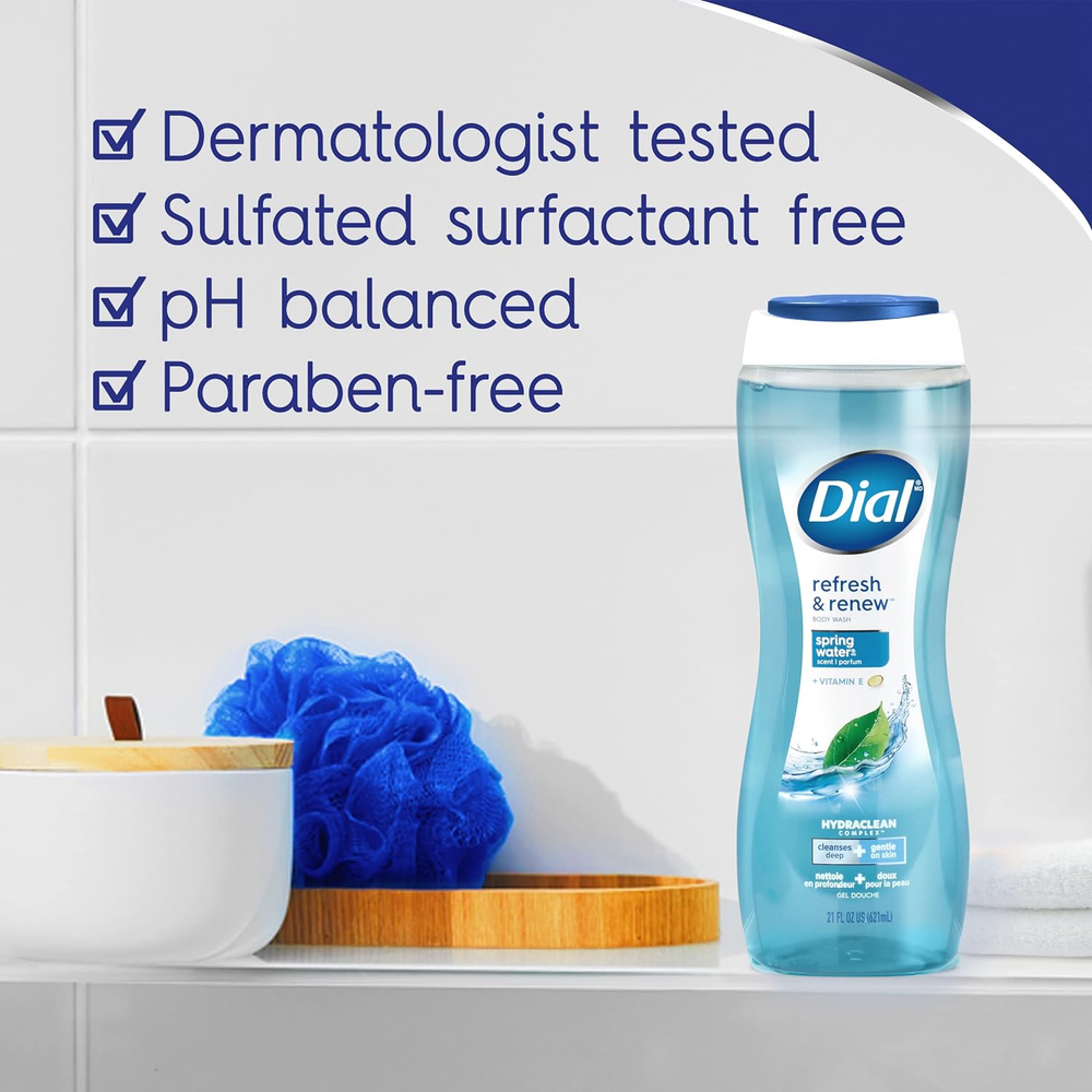 Store New Arrivals Add to Favorite View Feedback Contact Dial Body Wash, Refresh & Renew Spring Water, 32 Fl Oz Description Item model number 2563525 Item dimensions L x W x H 2.84 x 4.05 x 9.44 inches Is Discontinued By Manufacturer No Product Dimensions 2.84 x 4.05 x 9.44 inches; 2 Pounds Country of Origin USA Item Weight 2 Pounds Age Range (Description) Adult Manufacturer Dial Scent Spring Water Brand Dial Size 32 Fl Oz (Pack of 1) Feels deeply cleansing but is gentle on skin for an ultimate shower experience Leaves skin feeling replenished, renewed, and restored back to its natural healthy state Refreshing spring water fragrance. Contains 32 fluid ounces of bodywash Dermatologist tested & approved under the Leaping Bunny cruelty free program Free From: Parabens Phthalates Silicones Sulfated Surfactants Packaging may vary New from Dial! Refresh & Renew Spring Water body wash. Revitalize yourself with a crisp uplifting clean that leaves you feeling renewed. Dial HYDRACLEAN Complex feels deeply cleansing while being gentle on your skin, leaving it feeling soft & healthy. Dermatologist tested & approved under the Leaping Bunny cruelty free program. This package contains 32 fluid ounces of Dial body wash. ABOUT US We offer the best prices around on high quality products. Our E-store includes media such as books, movies, music and games while offering electronics, toys, sporting apparel, clothing, tools, general home, garden items and more. SHIPPING We are always working hard to ensure your package arrives as soon as possible. Please understand that some factors like weather, high postal traffic, and the performance of shipping companies are outside of our control. We offer free shipping to the lower 48 states and ship within 2 business days of payment, usually sooner. We do not accept P.O. Boxes. Please provide a physical address. RETURNS We offer a 30-Day Return Policy on items which you are not completely satisfied with. You have the option for a full-refund or an exchange of the item. No returns are available on items shipped outside of the USA. PAYMENT We accept PayPal. CONTACT US This page content is yet to come Please ad us to your favorite seller and visit again later Thank You CUSTOMER SATISFACTION We try our very best to make sure every customer is completely satisfied. If there's a problem, message us! We're happy to help.