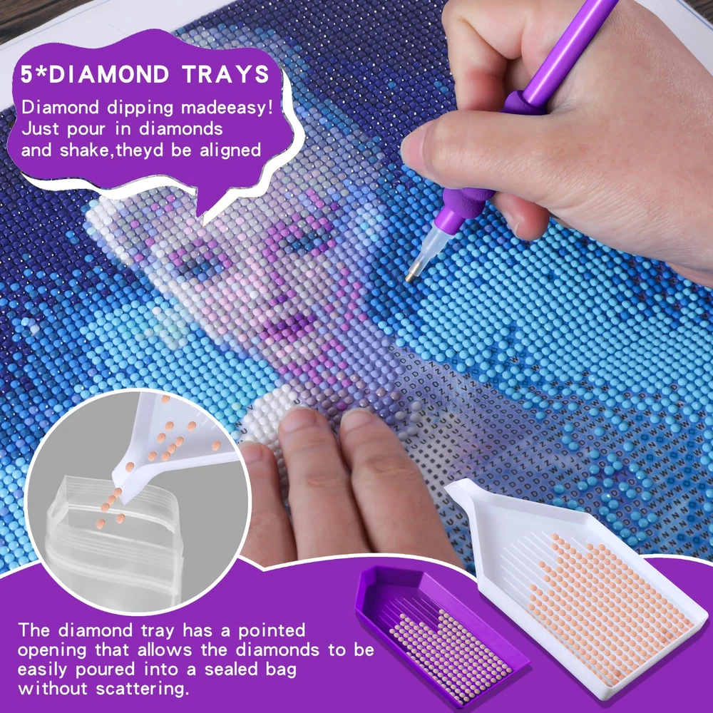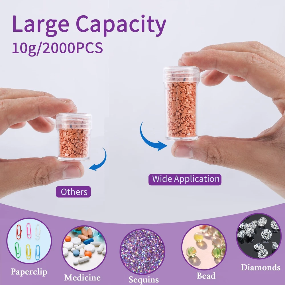 Diamond Art Storage Containers LARGE CAPACITY AND MULTIFUNCTIONAL: There are 120 slots diamond storage bottles for packing diamonds and painting different colours and models of beads. It can also store many small items such as rings, necklaces, sequins and so on DIAMOND PAINTING STORAGE: The mesh bag can hold all the diamond painting accessories, and the bottom foam provides shockproof protection for the diamond container. Make sure everything is neat and tidy, say goodbye to cluttered workspace DURABLE AND EASY TO CARRY: The diamond art storage box is sturdy in quality and designed with a double zip handbag to withstand frequent use. Equipped with sturdy handles to make your travelling and carrying more convenient PERFECT GIFT: The tool can be used by 2-3 people at the same time. You can complete the diamond painting with your kids to promote parent-child relationship and their hands-on ability. It can also be used as a birthday or holiday gift for your relatives and friends PACKAGE INCLUDES:he diamond painting kit includes Diamond Painting Storage Box、120 Slot Diamond Storage Bottle、Blank Sticker Sheet、4 Diamond Pens、Diamond Corrector、20 Pieces of Glue、120 bags、Iron Tweezer、4 Anti-skid pen sleeves、Anti-skid pad、Folding Funnel、3 Diamond Trays、4 Canvas Clips