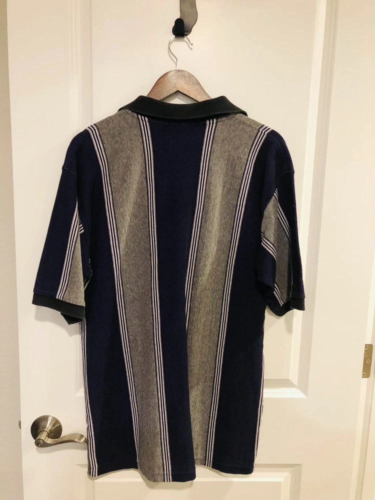 The Diamond Backs 1997 Vintage Antigua Purple Striped Polo in size Large is a casual unisex adult baseball apparel featuring the Arizona Diamondbacks team. Made from 100% polyester, this officially licensed polo shirt is perfect for fans of Major League Baseball looking to show their support in a retro 90s style. Its collared neckline and short sleeves offer a classic yet comfortable fit, ideal for wearing during the regular season games or even out on the golf course. Easy to care for with machine washability, this multicolor polo is a must-have for any baseball enthusiast looking to add a unique piece to their collection.