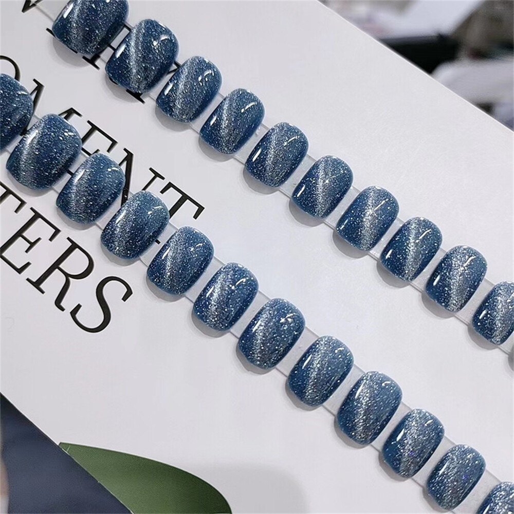 $ 2.11Aurora Shiny Cat's Eye False Nail Short Square Press on Nails for Nail Art 24pcs