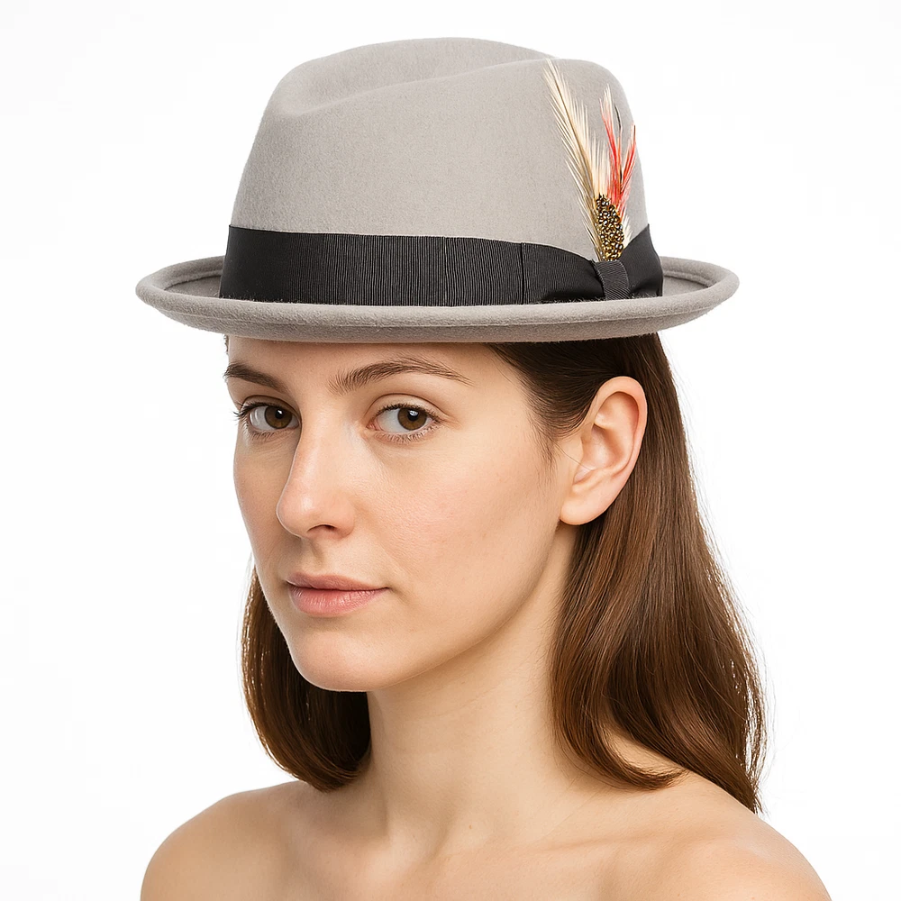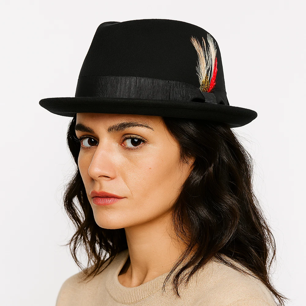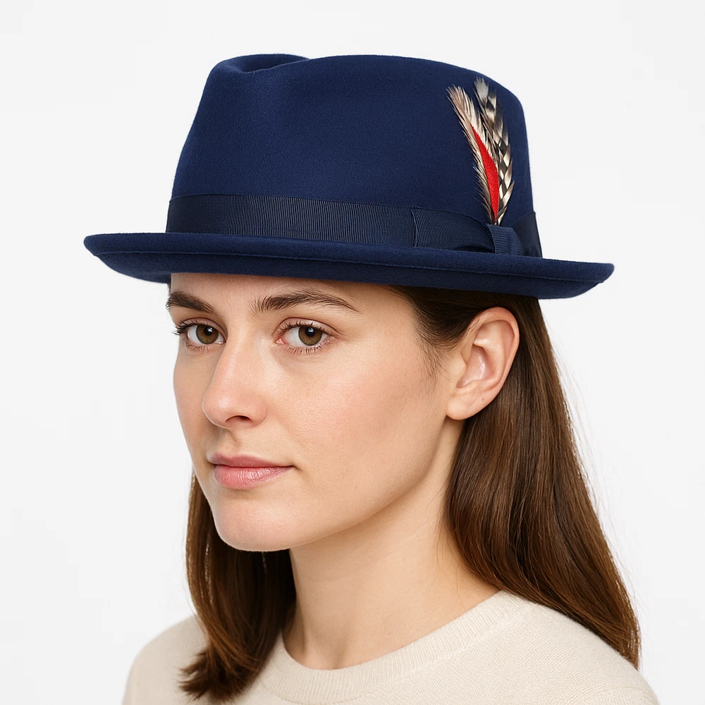 Diamond Crown Pork Pie Hat 100% Wool Felt – 5 Colors – Travel Ready Fedora Add a timeless touch of sophistication with this Crushable Wool Felt Diamond Crown Pork Pie Hat , now available in 5 rich, versatile colors — Black, Navy Blue, Brown, Grey, and Mix Grey . Whether you're stepping out in the city or packing for a stylish getaway, this hat is designed for both form and function. 🎩 Key Features: ✔️ 100% Wool Felt – Warm, breathable, and long-lasting ✔️ Crushable & Packable Design – Ideal for travel or storage ✔️ Classic Diamond Crown Pork Pie Style – Perfect for jazz, vintage, and retro lovers ✔️ Handmade Craftsmanship – Exceptional quality and detail ✔️ Cotton Sweatband – Soft and moisture-wicking for all-day comfort ✔️ Removable Feather – Dress it up or down with ease ✔️ Unisex Fit – Stylish for both men and women 🎨 Available Colors: Black Navy Blue Brown Grey Mix Grey 📏 Available Sizes: Small – 55 cm (6 7/8) Medium – 57 cm (7 1/4) Large – 59 cm (7 1/2) X-Large – 61 cm (7 3/4) 🧳 Perfect For: Fashion-forward travelers Jazz musicians and fans of retro style Fall/Winter wardrobe essentials Holiday or birthday gifts Casual or formal wear This Crushable Wool Pork Pie Fedora is your go-to accessory for travel, fashion, and function. Stay sharp in 5 elegant colors , each handmade with comfort and style in mind.