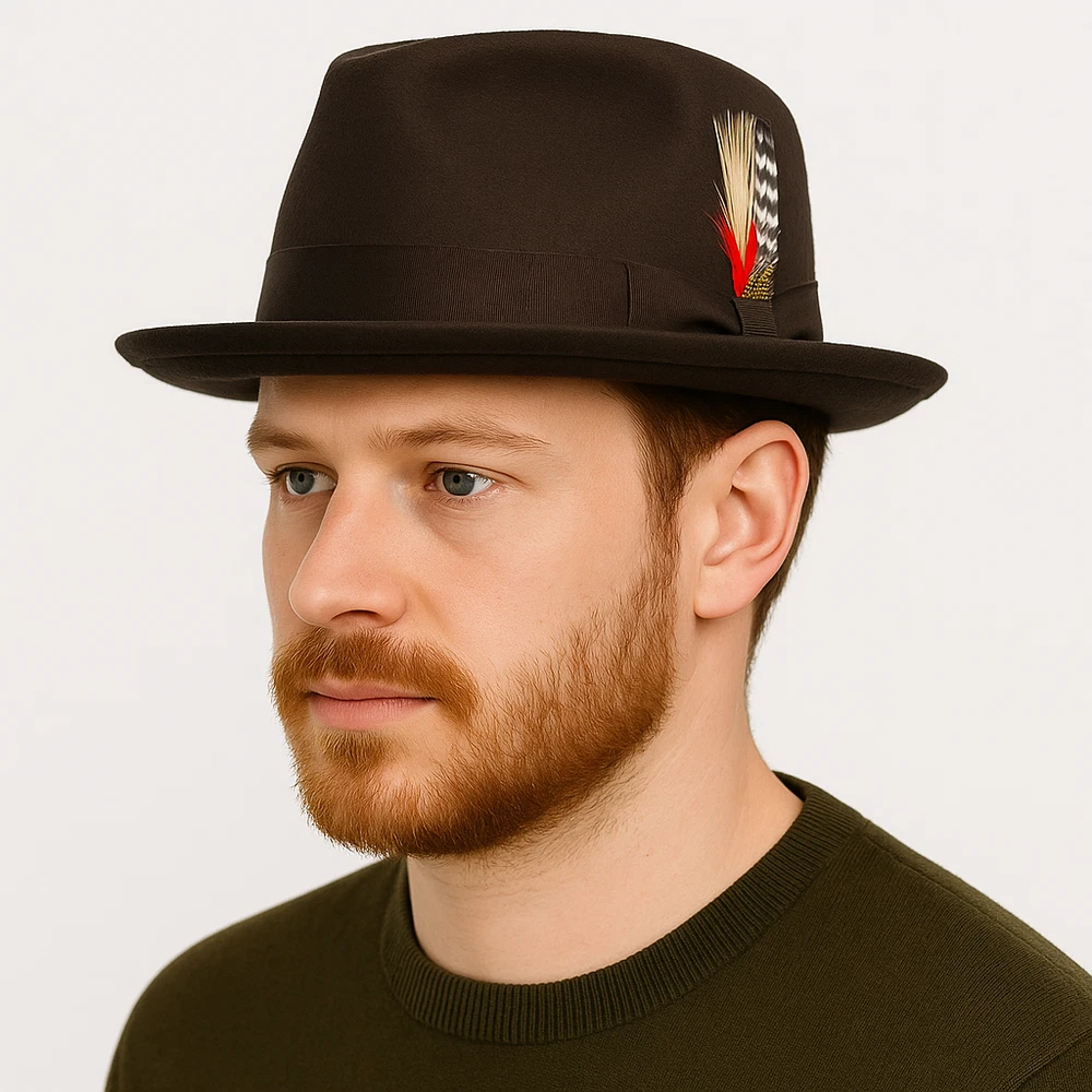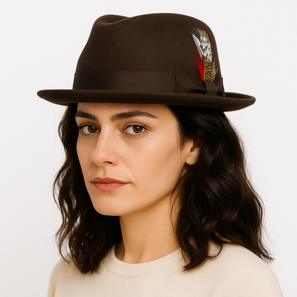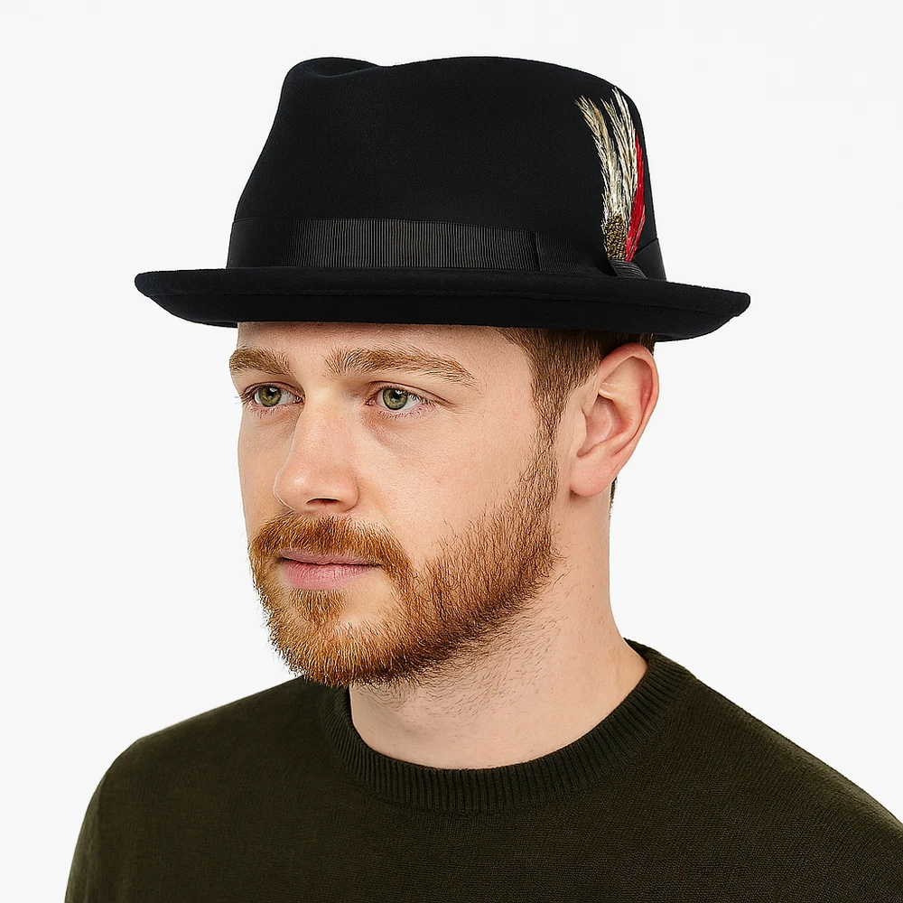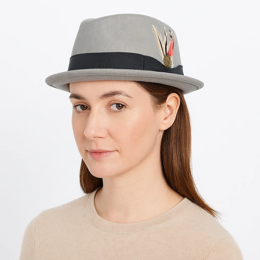 Diamond Crown Pork Pie Hat 100% Wool Felt – 5 Colors – Travel Ready Fedora Add a timeless touch of sophistication with this Crushable Wool Felt Diamond Crown Pork Pie Hat , now available in 5 rich, versatile colors — Black, Navy Blue, Brown, Grey, and Mix Grey . Whether you're stepping out in the city or packing for a stylish getaway, this hat is designed for both form and function. 🎩 Key Features: ✔️ 100% Wool Felt – Warm, breathable, and long-lasting ✔️ Crushable & Packable Design – Ideal for travel or storage ✔️ Classic Diamond Crown Pork Pie Style – Perfect for jazz, vintage, and retro lovers ✔️ Handmade Craftsmanship – Exceptional quality and detail ✔️ Cotton Sweatband – Soft and moisture-wicking for all-day comfort ✔️ Removable Feather – Dress it up or down with ease ✔️ Unisex Fit – Stylish for both men and women 🎨 Available Colors: Black Navy Blue Brown Grey Mix Grey 📏 Available Sizes: Small – 55 cm (6 7/8) Medium – 57 cm (7 1/4) Large – 59 cm (7 1/2) X-Large – 61 cm (7 3/4) 🧳 Perfect For: Fashion-forward travelers Jazz musicians and fans of retro style Fall/Winter wardrobe essentials Holiday or birthday gifts Casual or formal wear This Crushable Wool Pork Pie Fedora is your go-to accessory for travel, fashion, and function. Stay sharp in 5 elegant colors , each handmade with comfort and style in mind.