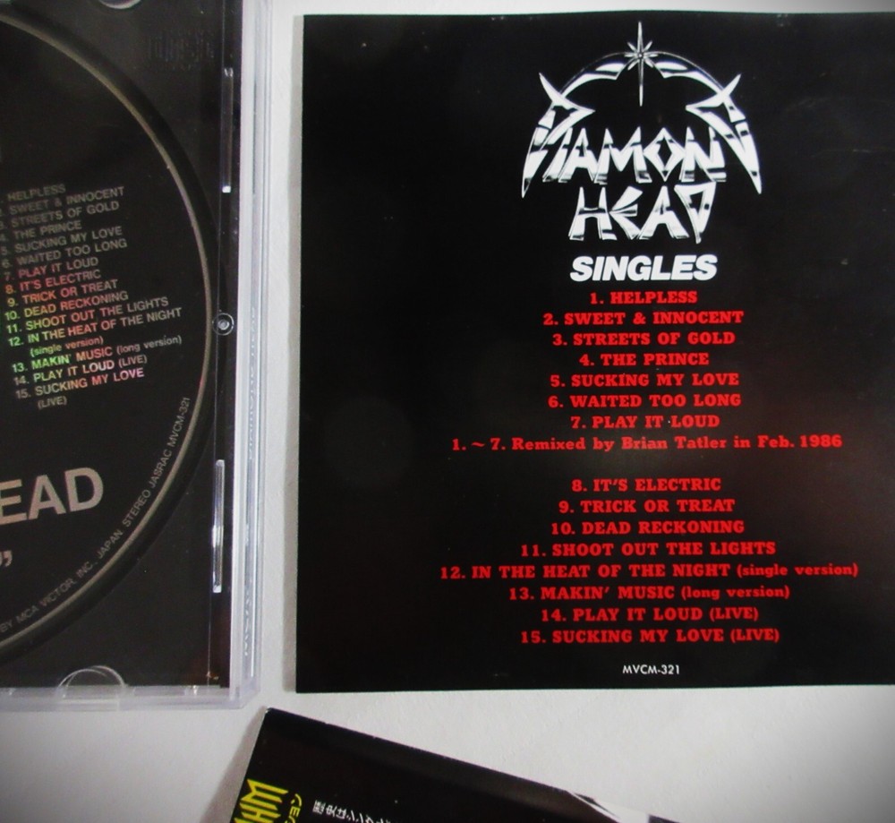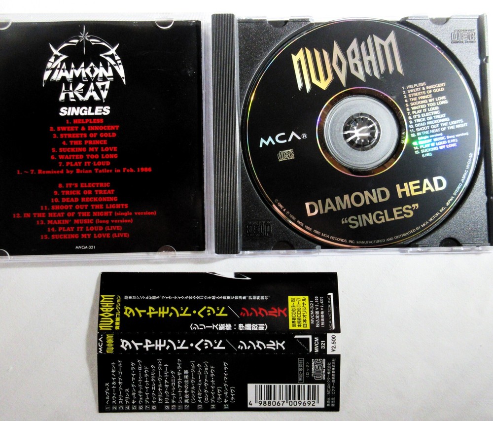 DIAMOND HEAD "THE SINGLES" PLUS . CD . JAPAN . EX Grading scale . PICTURES ARE OF THE ACTUAL ITEM FOR SALE . Grading determines price . NM - Sleeve and Record are almost as new . Light wear possible . EX - Excellent cover may have light wear , light handling . Record may have light marks . Light noise . VG - Cover will have noticeable handling wear , creases , light wear and tear . Record will show play , possibly scratches . Still playe through fine . P - Cover very wrinkled and worn , marks , tears creases . Record will have definite surface noise . Scratches on the vinyl . SLEEVE: EX Some handling CD: EX++ OBI: EX Some handling on it . INNER POUCH : NICE ! All items packed very carefully!!! SHIPPING USA IS $4.50 SHIPPING OVER SEAS IS $16.00
