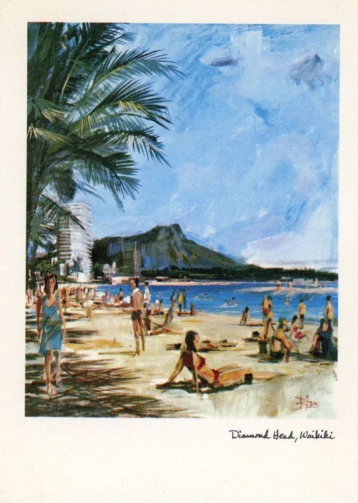 Diamond Head, Waikiki, Hawaii, 1967 --POSTCARD Unused postcard in Very Good Condition 6" x 4" Chrome (c. 1939-present) (210-010) Excellent Condition: Like mint in appearance with no bends or creases, or rounded or blunt corners. May be postally used or unused and may have writing and postmark only on the address side. A clean, fresh card on the picture side. Very Good Condition: Corners may be just a bit blunt or rounded. Almost undetectable crease or ben that does not detract from overall appearance of the picture side. May have writing or postal use on address side. A very collectible card