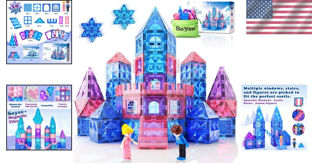 gtin13: Does not apply Number of Pieces: 58 Age Level: 3+ Theme: Princesses Character: Princess Material: Plastic, Food-grade ABS plastic UPC: Does not apply Brand: Unbranded Retired: No Type: Magnetic Building Set Features: Without Manual, Includes doors, Includes windows, Includes stairs, Promotes creative play, Encourages screen-free play, Supports STEAM learning, Fosters language skills, Fosters cognitive skills, Fosters motor skills, Fosters social skills, Fosters emotional skills, Ideal for road trips, Ideal for playdates Packaging: Box