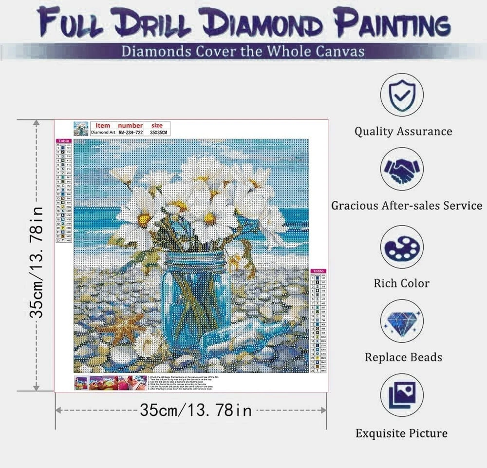 Diamond Painting Kits for Adults Vases DIY 5D Diamond Art Kits RM-ZSH-722 Age Range (Description): Kid,Adult Color: RM-ZSH-722 Theme: Art Cartoon Character: Vases Diamond Painting Kits:Each kits contains all diamond painting accessories. Including 1×high definition painting canvas; color coded rhinestones; 1×point diamond pen; 1×craft tray; 1×clay; 5×self-sealing bags. Note: The frame is not included. Don’t worry about the lack of diamonds. Add 30 percent to each color of diamond High Quality: 12D painted diamonds have a unique luster, glittering and never fading; canvas material of painting has high definition, uniform texture and waterproof function, which can be maintained for a long time Easy to Read: Each diamond painting is designed with different symbols and graphics to define the patterns, the letter symbols are clear and easy to understand and the DMC code on the canvas corresponds to the color of the drill bit, thickened high - definition oil canvas, and we provide a larger painting area. You can enjoy the Art Craft Time freely DIY Home Decor Best Gift: Your own diamond painting art masterpieces will light up every room. What can be more satisfying than decorating your home with your own art The perfect DIY gift for graduations, anniversaries, birthdays, and every festivals in between Return Policy: We offer a 30 day return policy from the receiving date. Please contact us for a Free Return Label. Please use our return label so it will go back to our supplier and we can do a refund or replacement afterwards. Feedback: Your satisfaction is very important to us! If you have any problem with your order, please contact us and we will do our very best to make you satisfied. As long as you are happy with your purchase, please leave a positive feedback for us. We will always leave you a positive feedback in return. If you have any problem with your purchase, please do not leave a negative feedback. Please Contact us ... and your issue will be solved quickly and positively We are a small family-owned business trying to make a living, not a huge company that does not care ... We will ALWAYS do our best for you!