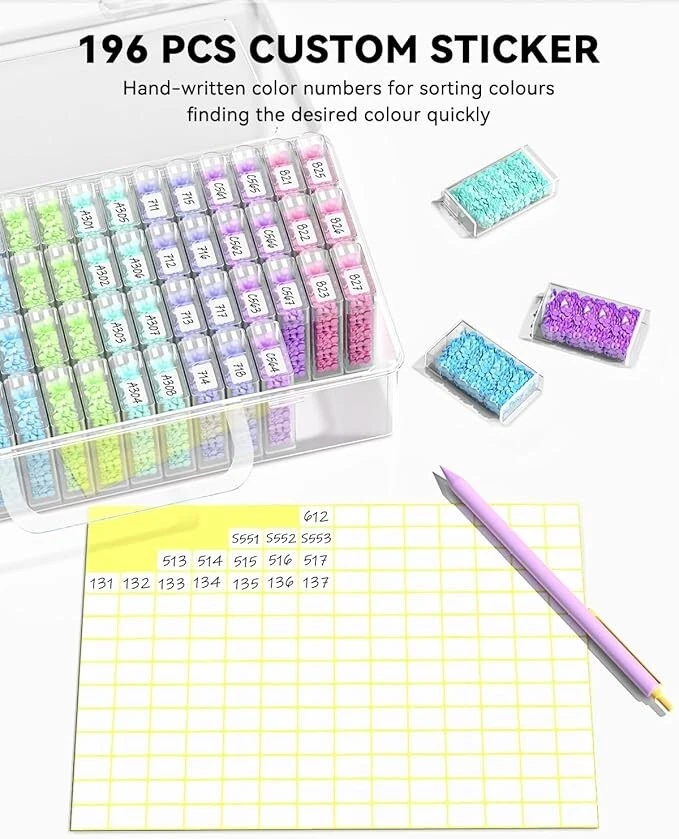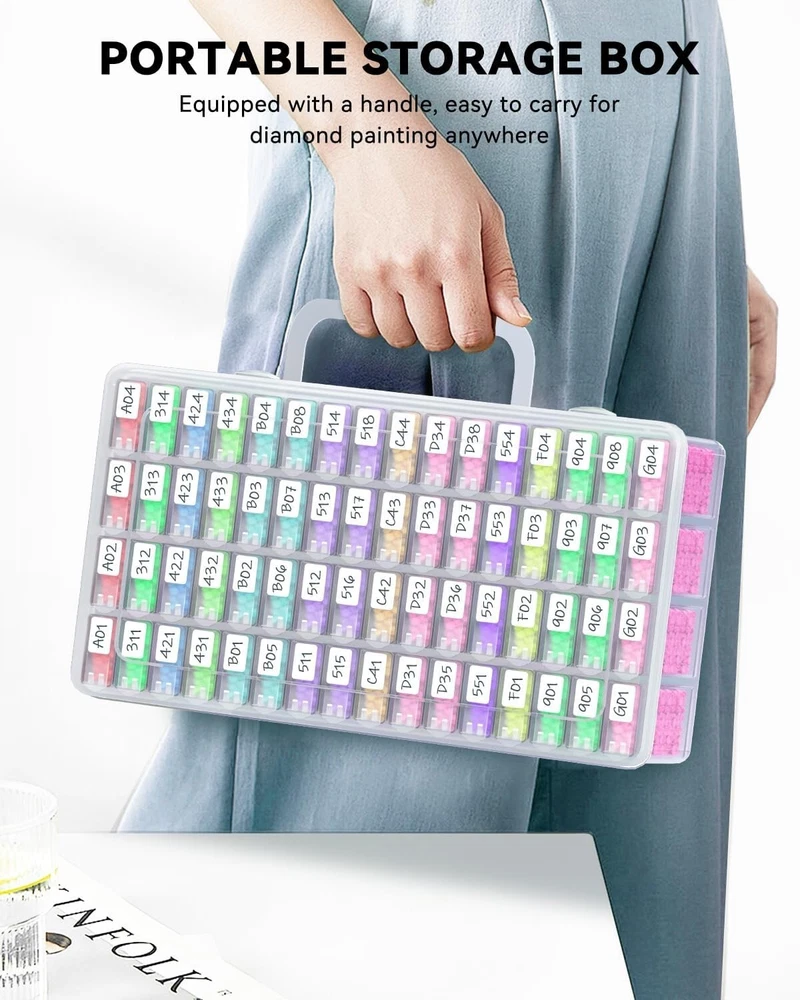Free eBay listing template designed by dewiso.com ARTDOT Diamond Painting Storage Containers, Diamond Art Portable Bead Storage Organizer 64 Gird Diamond Painting Accessories (Storage Box) About this item About this item EFFICIENT STORAGE CHOOSE - The storage box comes with 64 transparent containers, reducing clutter and saving space while allowing easy viewing and access to specific items, enhancing your diamond art experience CUSTOM LABEL STICKERS - Includes 192 blank label stickers for easy categorization and identification of items, increasing efficiency and saving time and effort during crafting or organizing tasks VERSATILE STORAGE: Each diamond painting storage bottle has a capacity of 7 grams and can hold about 1400 diamonds or seeds, nail art supplies, buttons, etc, which can meet the storage needs of different craft projects EASY TO CARRY - The lightweight and portable diamond art storage box with a handle helps reduce space usage, whether at home or on the go. You can create and organize your artwork anytime, anywhere. It offers greater convenience and flexibility EXCELLENT VALUE - Obtain high-quality diamond art storage boxes at a lower cost. Effortlessly acquire a premium storage solution that ensures your items are well-protected and organized, meeting all your storage needs Product Description 64 Grids Acrylic Jewelry Storage Box Embroidery Storage Case Plastic Box Organizer Medicine Case Diamond Painting Accessories Tools, Transparent Empty Nail Art Tip Storage Container Case Life is More Fun When You Paint by Diamond as an Artist. Why choose ARTDOT 64 Gird Diamond Painting Storage Containers Accessories Tools for Diamond Art Kits: Easily store diamond drills in one box while minimizing clutter around your study or living room using 64 Gird diamond art storage container. Box cover is designed with button,which ensures the box dust proof and waterproof,and the items will not miss. 196pcs sticker help you organize and find your diamonds with color code much easier and it is easy to remove for re-positioning. Box cover is designed with button,which ensures the box dust proof and waterproof,and the items will not miss. Bead organizer suitable for diamond dotz, diamond dots and other craft. You can store earrings, necklaces, beads, rings or other trinkets, nail drill, etc. Specification: Color: Transparent Material: High Quality Clear Plastic Big Case Size: 22*12.5*5cm/8.66*4.92x2 inch (approx.) Small Grid Size: 2.7*1.2*5cm/1*0.47*2 inch (approx.) NOTE: Diamond not included. Package include: 1 * 64 Girds Plastic Storage Box (Diamonds not included) Label Sticker Contact us We can be contacted at any time through eBay messages if you have any questions, comments or product requests. We will respond to you within 24 hours and do our best to help you out! We encourage our customers to contact us with any questions or concerns! We'd like to be sure you are completely satisfied with your purchase. VERVEMARKET