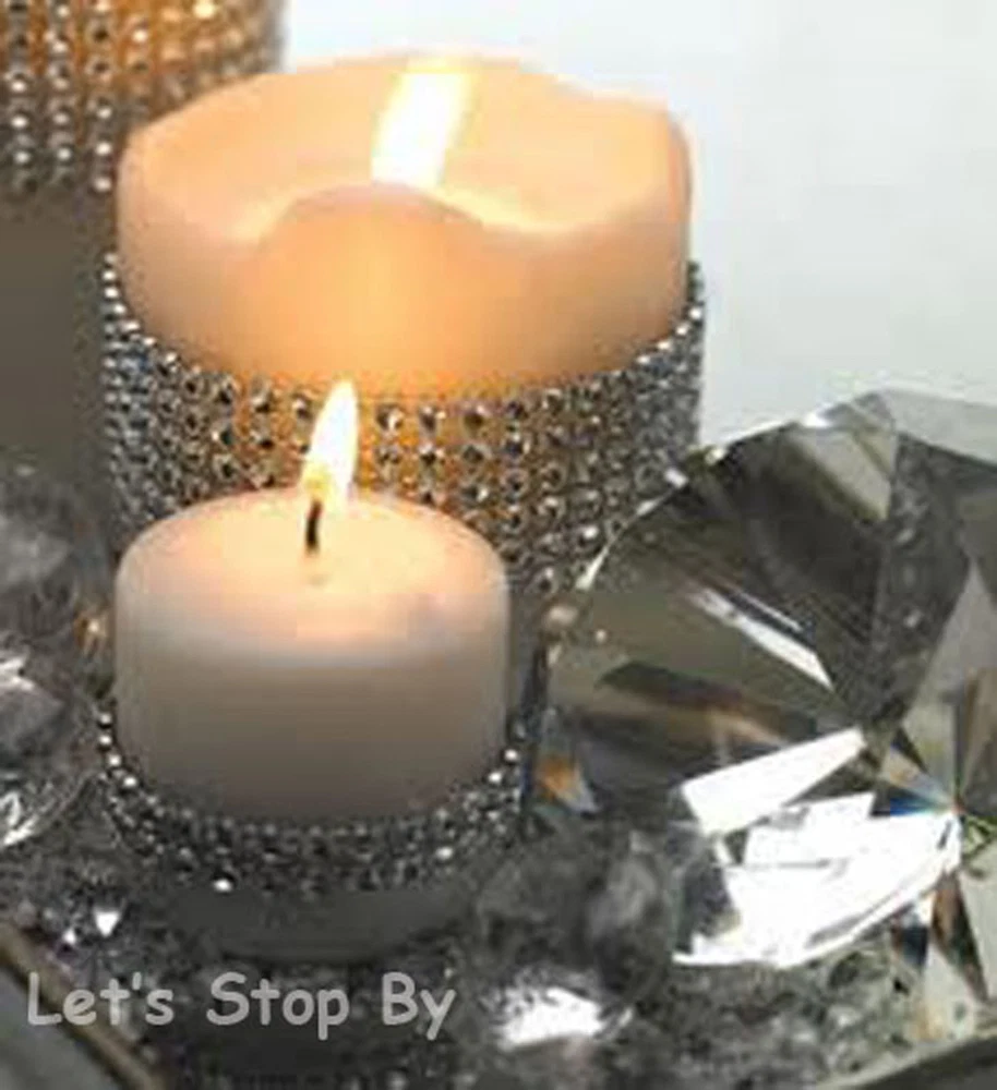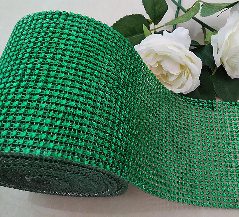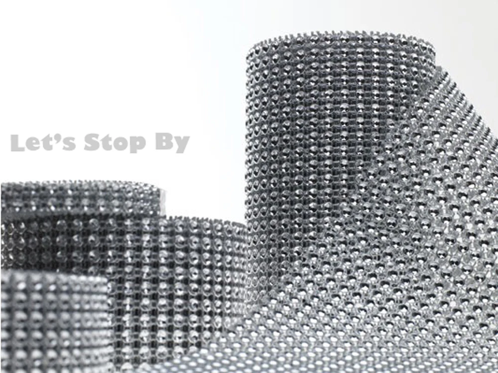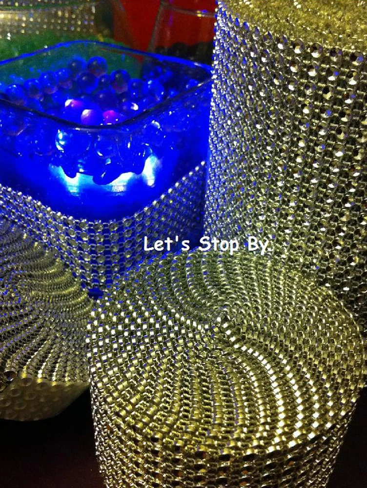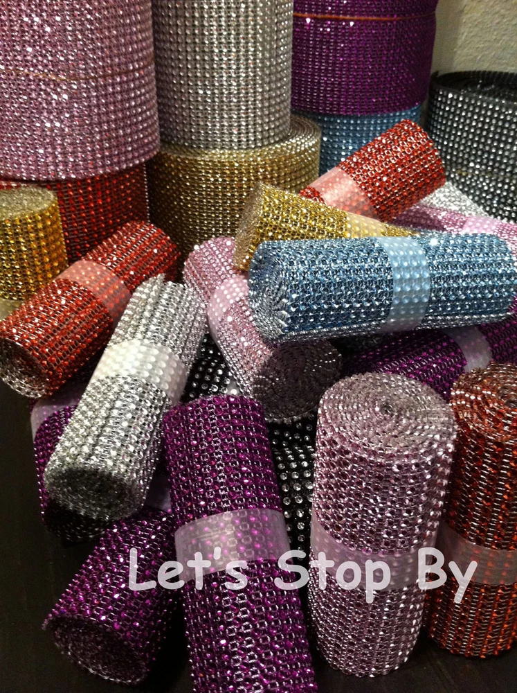Diamond / Rhinestone Wrap for Decoration **Free Shipping** *** We have Silver , Black, Gold , Pink , Purple , Red , Blue , Green, Teal, Fuchsia Available *** The color is same as the photos, however there might be a slight color difference due the the light effect, and the margin error from the camera, and the computer screen settings. Size: 4.5 inch x 3ft (1 Yard) 4.5 inch x 6ft (2 Yards) 4.5 inch x 9ft (3 Yards) 4.5 inch x 15ft (5 Yards) 4.5 inch x 30ft (10 Yards) PERFECT FOR DECORATION OF PARTIES, WEDDINGS, HOTELS, RESTAURANTS, LOUNGE, BARS & THOSE SPECIAL OCCASIONS. Diamond Wrap Also known as Bling Mesh, Crystal Mesh, Diamond Mesh, Glitter Mesh, Rhinestone Ribbon or Rhinestone Mesh The hottest DIY trend for 2011. It is a bendable ribbon that *looks* like rhinestones. As wedding and special event decorators, we've used the Diamond Ribbon Wrap on and for a multitude of items: wedding bouquets head & cake tables candles vases cake and cake stands chairs / chair covers and other special event decor This mesh easily bends to fit around all shapes and can be cut to any size to give your project an instant bling look! Please note - The Diamond Wrap does NOT include any actual diamonds, crystals, or rhinestones. The mesh roll just looks like sparkling diamond stones . Payment and Shipping Terms All purchases must use Paypal to checkout. We apologize that we won't accept other payment methods. Pa yments by Paypal are expected within 4 days of close of auction. Non-paying bidders will not be tolerated. We will file a Non-Paying Bidder notice for all unpaid purchases with Ebay. Appropriate feedback will be left for nonpayers. We will ship your order within 1-2 days after receiving your verified payment (Excluding Weekends and Public Holidays) Refund Policy: All sales are final! No returned or exchanged. Return on defective or wrong items, item is missing: - If you got defective or wrong item, please ship it back for an exchange. P lease contact us if you are outside of USA!! Thank you for Looking!!!!