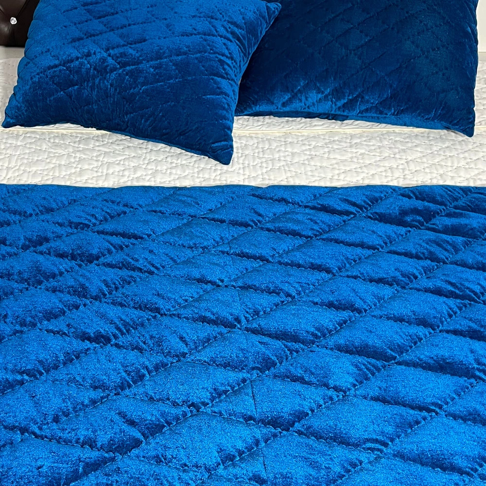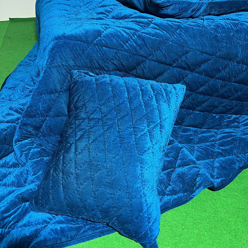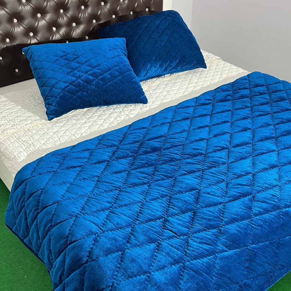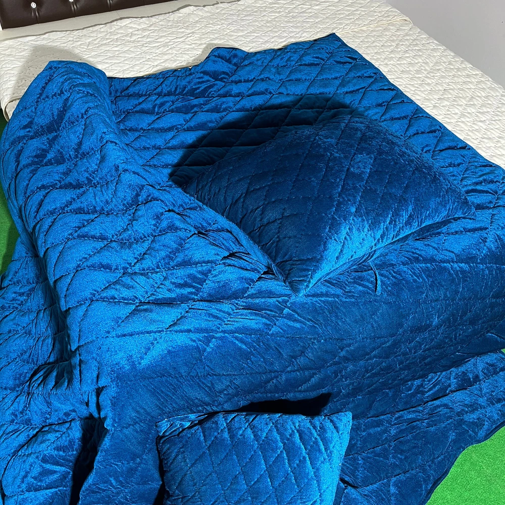 Welcome to Surya Handicraft Wrap yourself in warmth and love with our handcrafted blankets! Experience the ultimate blend of comfort and elegance with our Blanket Diamond Stitch Velvet Royal Blue Quilt. Crafted by Surya handicrafts, this luxurious full queen-sized blanket features a stunning diamond stitching pattern on a rich royal blue background, creating a modern aesthetic that perfectly complements any bedroom decor. Indulge in the softness of premium velvet and cotton materials, designed to provide warm insulation and a cozy feel that lasts all night long. Thoughtfully personalized to fit your unique style, this rectangular blanket measures 90 inches in both length and width, ensuring a perfect fit for your bed. It boasts a thread count of 801-999, ensuring a high-quality, dense weave that's both durable and comfortable. The blanket is easy to care for and is dry clean only, maintaining its luxurious appearance with minimal effort. Enhance your sleeping experience with this exquisite piece that brings a touch of luxury to your everyday rest. Each one is meticulously made with care and attention to detail, ensuring a unique and high-quality addition to your home. Made from soft, premium materials, our blankets offer both comfort and style. Ideal for cozying up on the couch, adding a touch of elegance to your bedroom, or as a thoughtful gift for loved ones. Handmade with Love: Each blanket is individually crafted, making every piece one-of-a-kind. Enhance your living space with a blanket that?s as unique as you are. Order yours today and experience the warmth of handmade quality Details #1 - Available in multiple sizes. Please select the size #2 - Stitching: Pure Hand Stitch #3 - Spot cleaning #4 - Light Cotton stuffing #5 - Delivered within 4 To 6 business days Measurement Multiple size available US Bedding sizes includes Lap /Twin/Full/Queen/King Customized sizes and color are available, please #1 - 40x50 - inch Lap Quilt #2 - 66x88 - inch Twin quilt #3 - 90x90 - inch Queen quilt - Weighs about 5.6 pounds (about 2.7 kilograms ) #4 - 90x104 - inch King quilt #5 - 92x108 - inch California King quilt #6 - 20X26 - 2 Euro sham #7 - 26X26 - 2 Euro sham Customizatio n You can get your choice of color for cotton. If you like a customized throw blankets or have any questions about the product, please send me a message and I will be happy to work on it. NOTE # BUYER WILL BE RESPONSIBLE FOR ANY RETURN COST